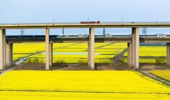 油菜花海开着春天的列车