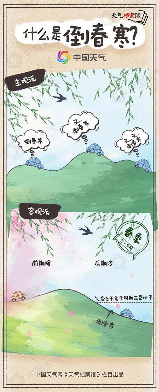 根据2017年制定的《倒春寒气象指标》(GB/T 34816—2017),气象学上的倒春寒是指每年春季(3月至5月)出现的前期暖后期冷,且后期气温明显低于正常年份的现象。另外,在气象学中,倒春寒也不单单意味着“气温跳水”,更是一种容易导致农业低温冻害的气象灾害。