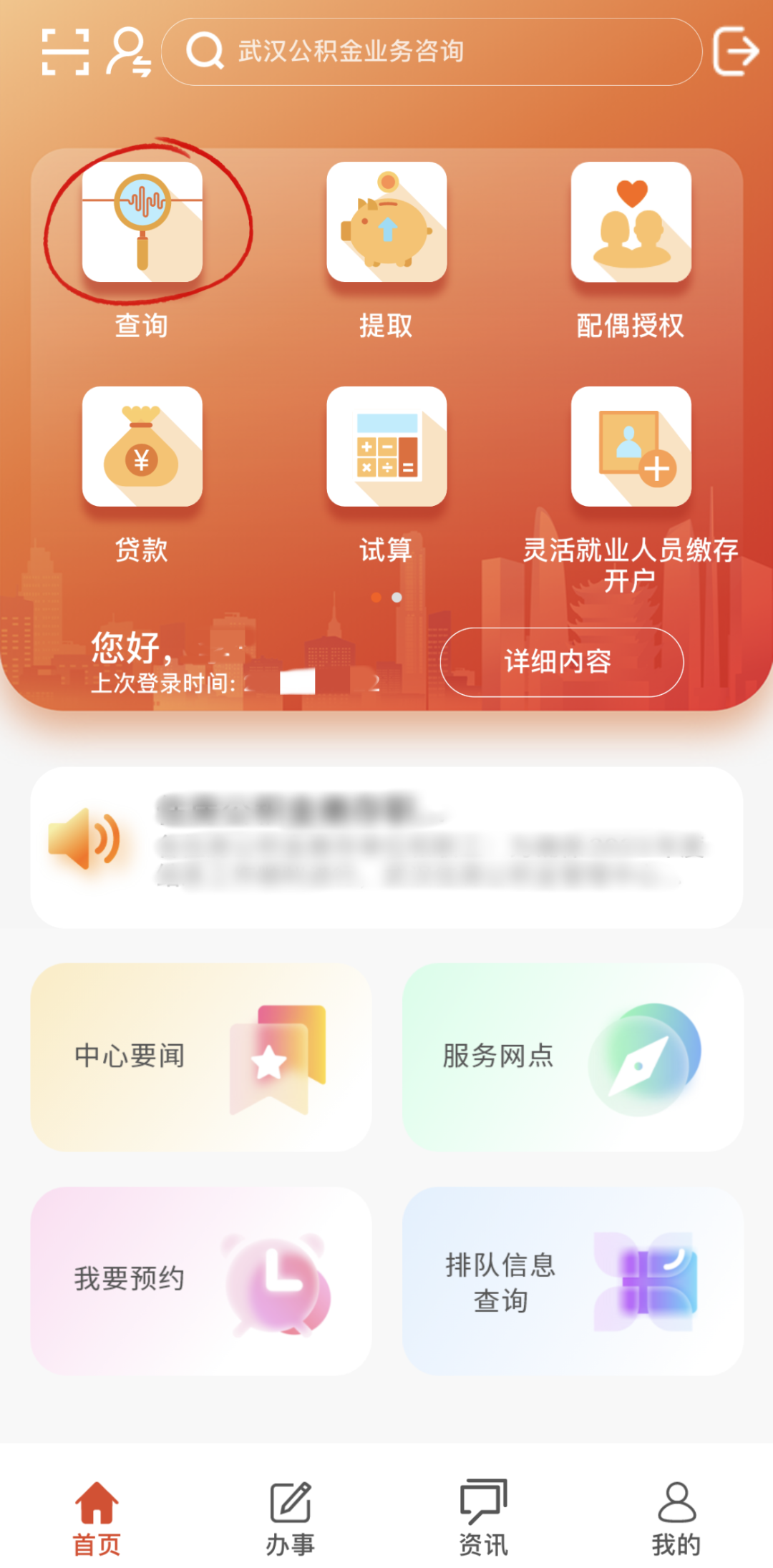 注册并登录“武汉住房公积金”APP,进入首页,点击“查询”,选择“公积金基本信息”,显示公积金个人账户基本信息。