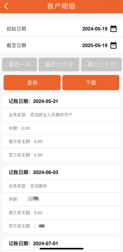 注册并登录“武汉住房公积金”APP,进入首页,点击“查询”,选择“公积金明细查询”,选择起始日期及截止日期后,点击“查询”,即可查询公积金缴存明细。也可直接查看最近一年、最近六个月、最近三个月账户明细。