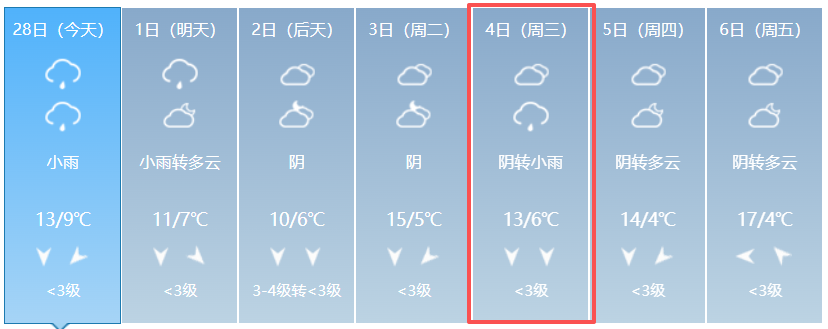 据气象部门预报,3月4日为阴转小雨天气,气温6℃至13℃。如遇降雨路面湿滑,可能引发局部路段缓行。