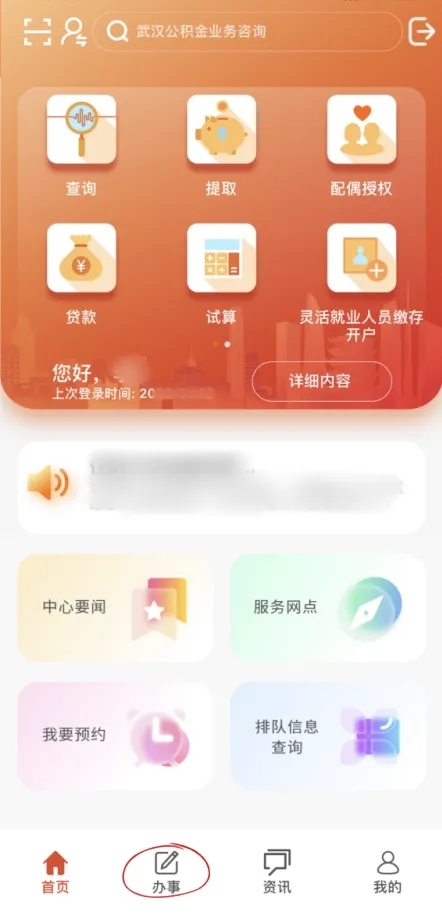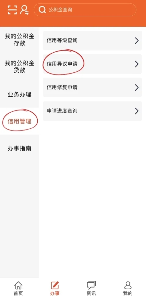 01 打开并登录武汉住房公积金APP,点击“办事”,选择“信用管理-信用等级查询”;