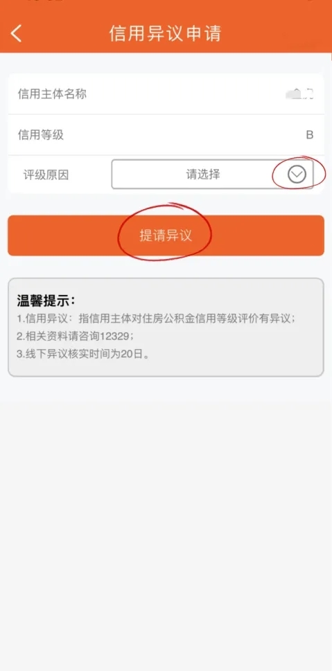 返回到办事界面,选择“信用管理—信用异议申请”,进入异议申请界面后,可点击下拉框选择评级原因(部分原因不支持线上处理),点击“提请异议”,等待异议审核结果(20日内)即可。