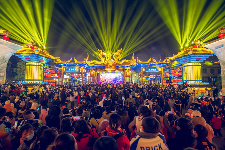 木兰花乡景区沉浸式夜游表演吸引众多游客。