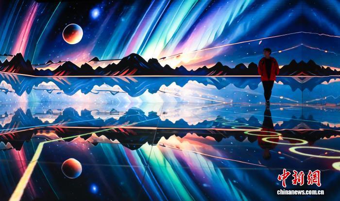 图为观众体验观赏沉浸式未来空间