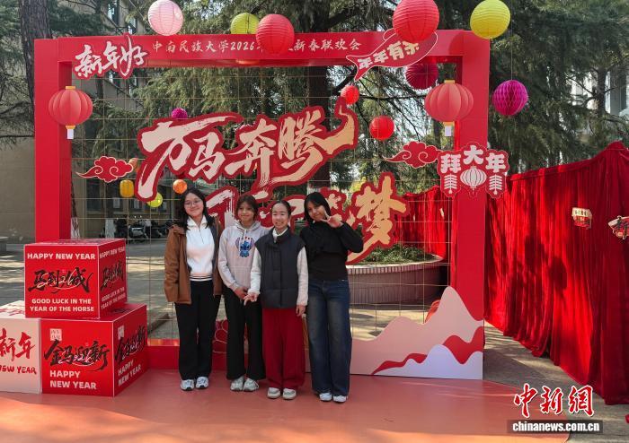 临近马年春节之际,中南民族大学留校学生在一起参加2026年师生新春联欢会。