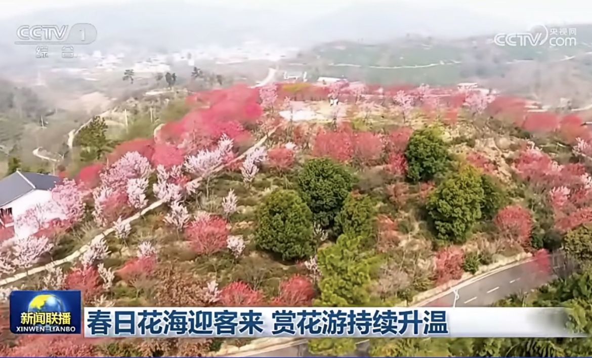 3月25日晚,中央广播电视总台《新闻联播》以《春日花海迎客来,赏花游持续升温》为题,关注武汉黄陂花乡茶谷景区赏花游的火热景象。
