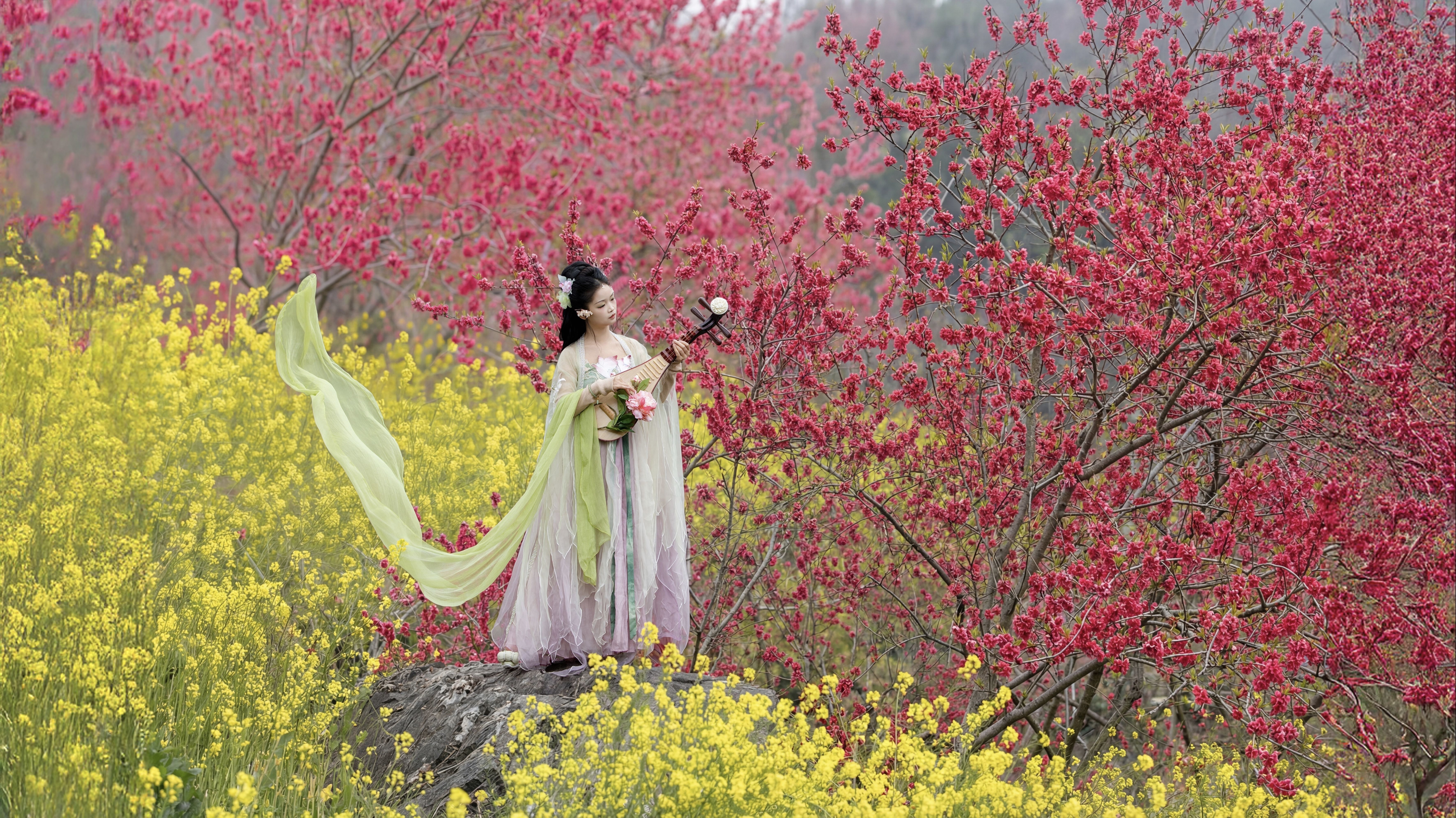 据介绍,景区目前中樱品种如染井吉野、江户彼岸正值盛花期,榆叶梅、红叶碧桃、山桃花等同步绽放,大面积的油菜花与二月兰点缀其间。中樱花期预计持续至4月初,随后晚樱将接续开放,整体赏花期可持续至五月。