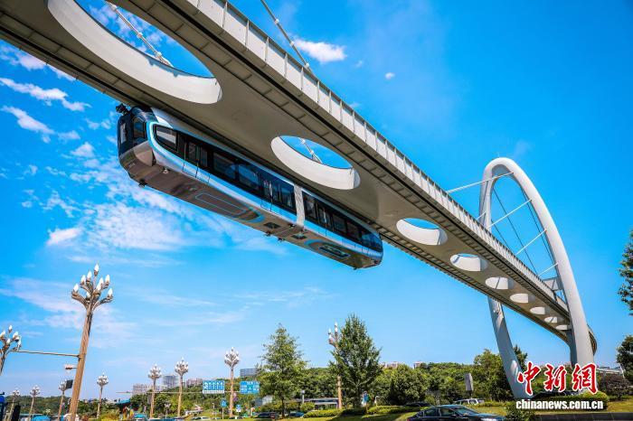 行驶中的“光谷光子号”空轨列车。(资料图) 周星亮 摄