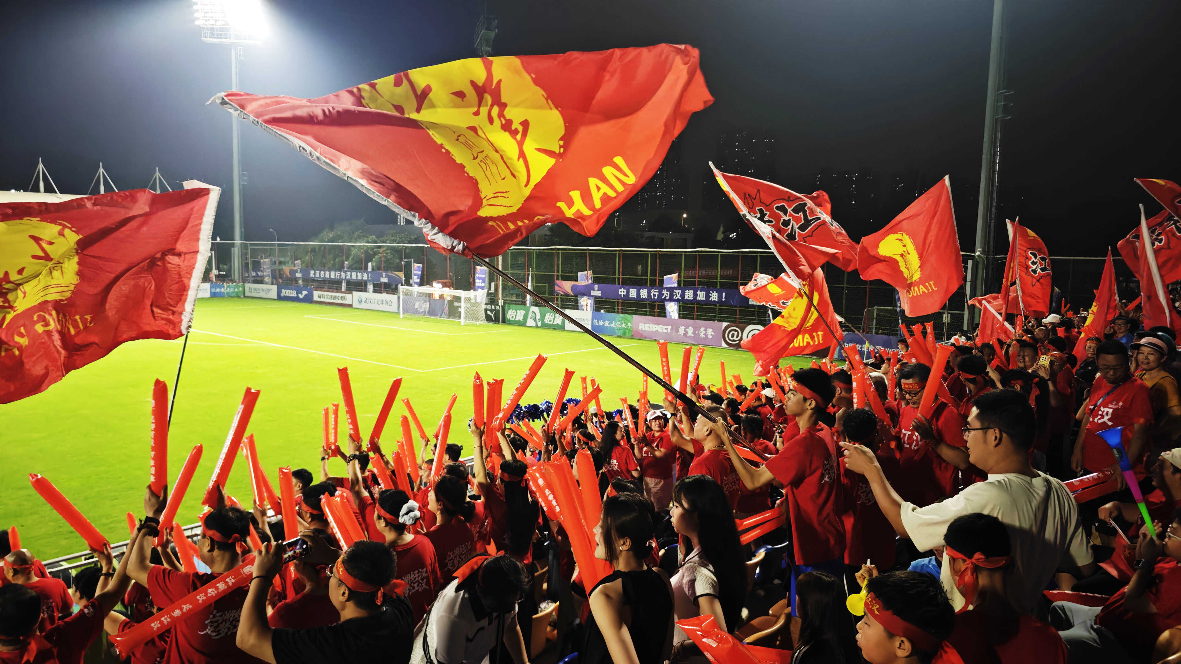 现场球迷为球队加油助威。