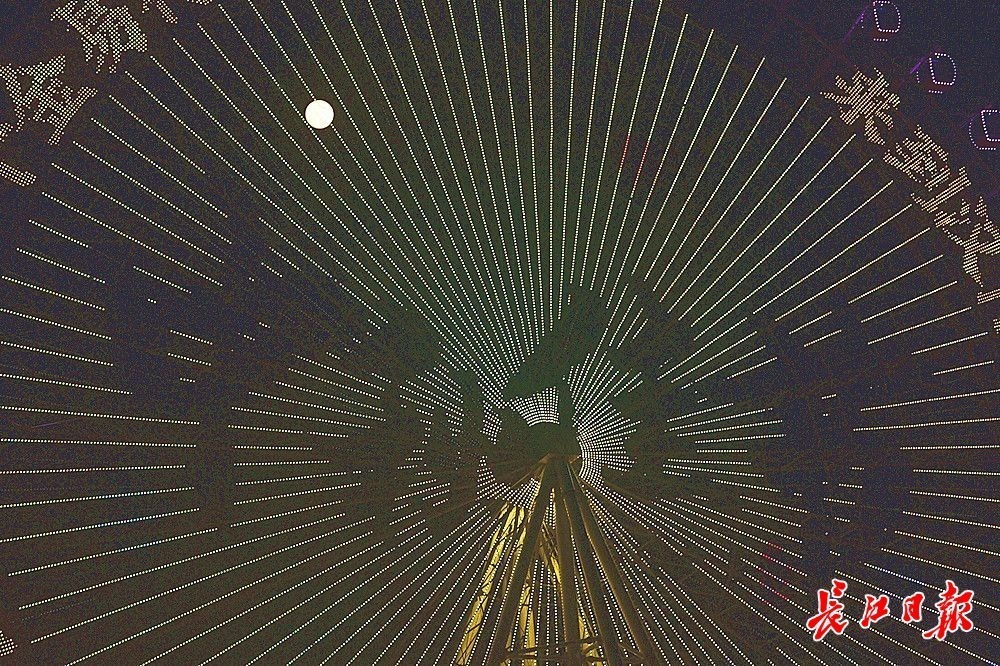 10月6日中秋之夜,武汉市汉阳区恒达欢乐世界上演了一场别开生面的光影盛宴。园区内高大的摩天轮变身巨型画布,轮番呈现中秋月圆主题画面,与夜空中高悬的玉盘遥相呼应,成为节日夜空中引人注目的景观,为武汉市民带来一场视觉盛宴。众多游客驻足观赏,感受“圆魄上寒空,皆言四海同”的美好意境。