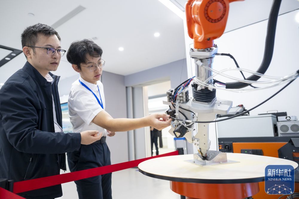 11月6日,在武汉产业创新发展研究院,工作人员展示增材制造机器人