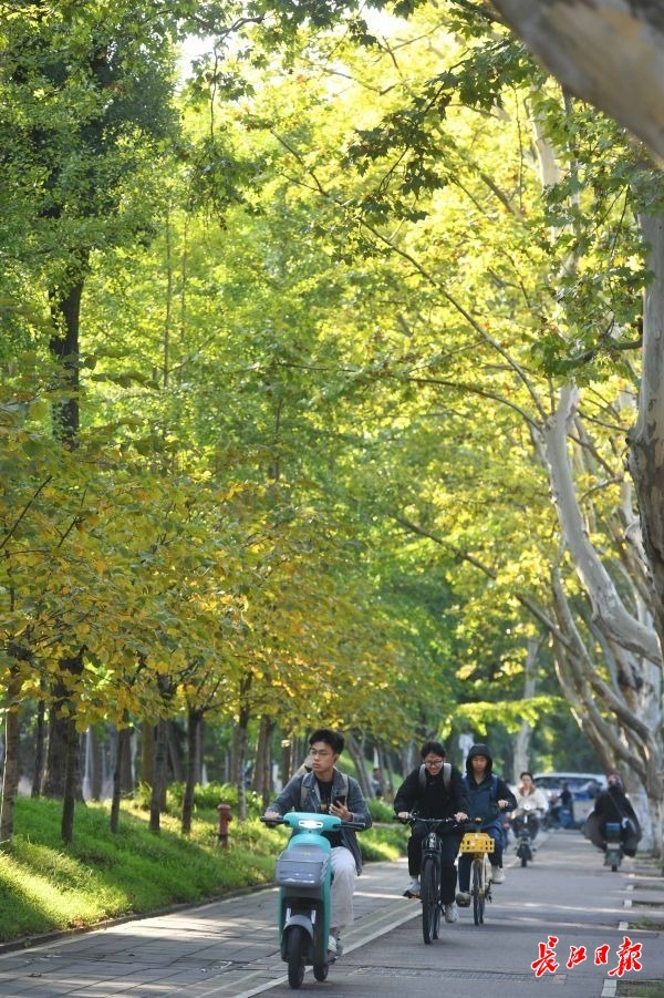 近日,华中科技大学层林尽染,梧桐树大道上树叶开始用色彩演绎生命中最华丽的乐章,粉黛乱子草点缀在树林中。人们漫步林间或沐浴阳光,在这里定格最美瞬间。