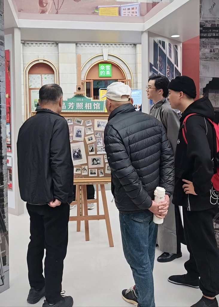 展区内部,铺陈相关史料、照片、实物,知名人物、往昔故事近在眼前,串联起交通路作为“文化街”的过往。由演员扮演的“报童”“邮递员”“书生”穿行其间,与市民互动。
