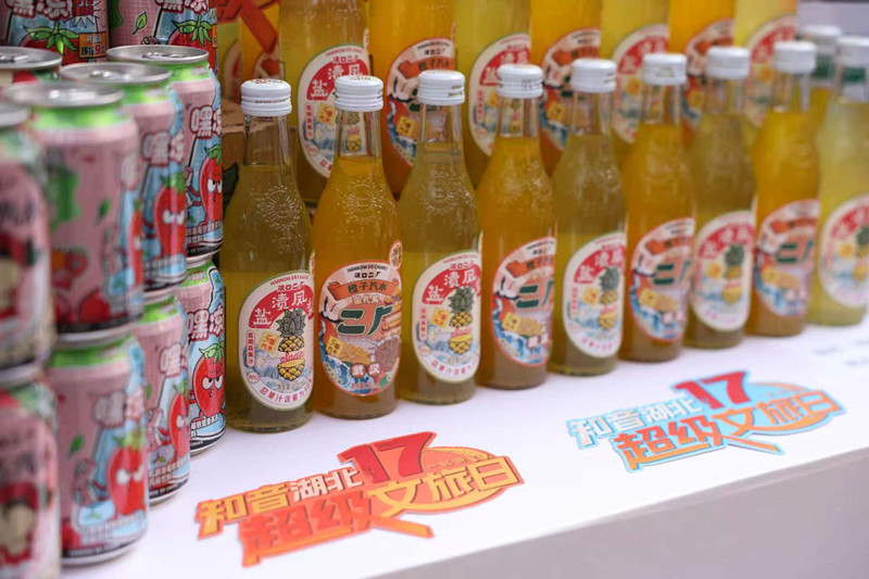 此外,汉口二厂的复古汽水、武汉金汇泉酸梅汤等饮品开盖即饮,方便游客随时解渴;汪集鸡汤、德华楼糊汤粉、老谦记豆丝、黄鹤楼酒等则为游客提供了便携包装,轻松把“武汉味道”带回家。来自湖南的游客彭丹和家人满载而归,“买了两盒汪玉霞酥糖和黄鹤楼冰箱贴,回去给朋友当伴手礼,让他们也尝尝武汉的老字号,感受武汉的城市风景”。趁着周末来逛江汉路的武汉大学生小筱则是武汉文创的忠实粉丝,“蒜鸟系列的玩偶我已经有一款绿色的了,今天又看中了其他几款方言玩偶,必须带回去收藏”。