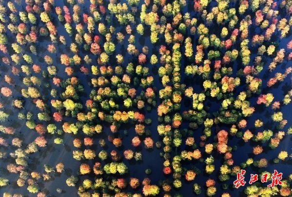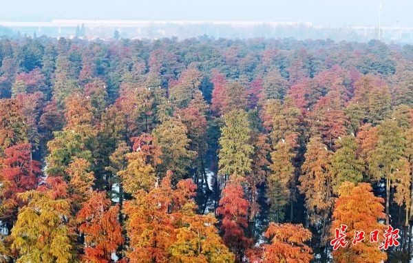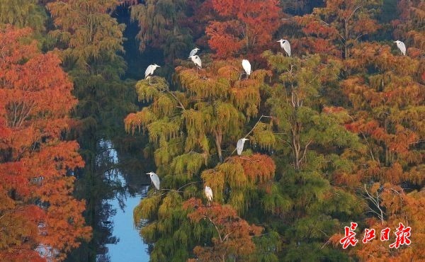 涨渡湖湿地森林公园的“水上森林”以池杉林层林尽染的景观闻名,秋冬季节池杉树叶由绿转黄、渐染绯红,形成色彩斑斓的“油画森林”奇观,同时吸引大量候鸟栖息,构成独特生态画卷。涨渡湖为长江中游重要湿地,2002年被世界自然基金会列为保护区,现存池杉超24000株,分为水上与陆地两片区域。11月至次年2月为最佳观赏期,12月雪后景观尤为梦幻。