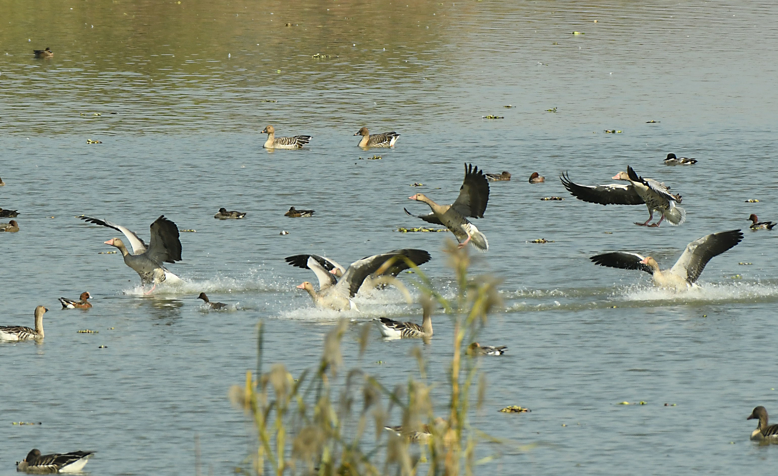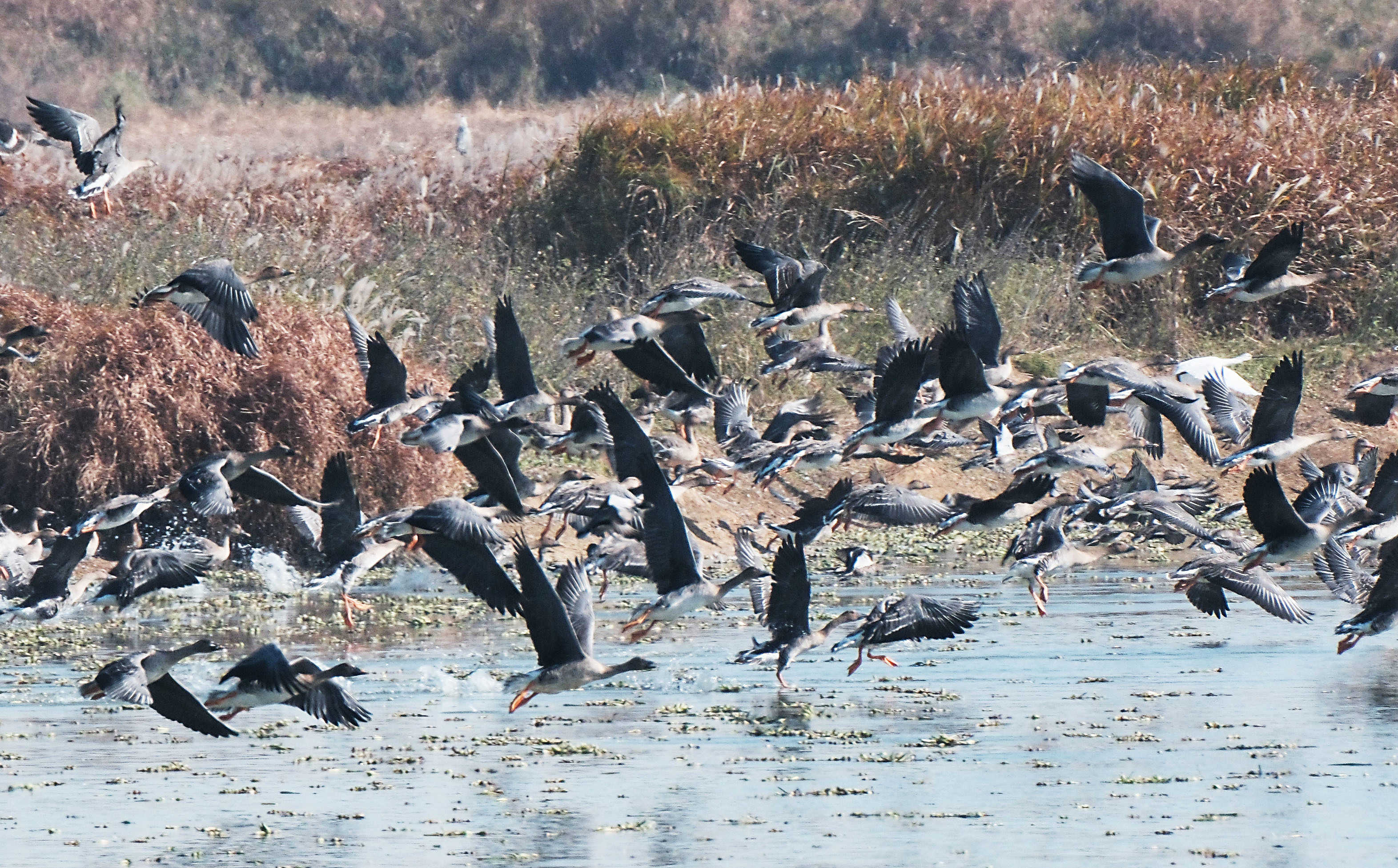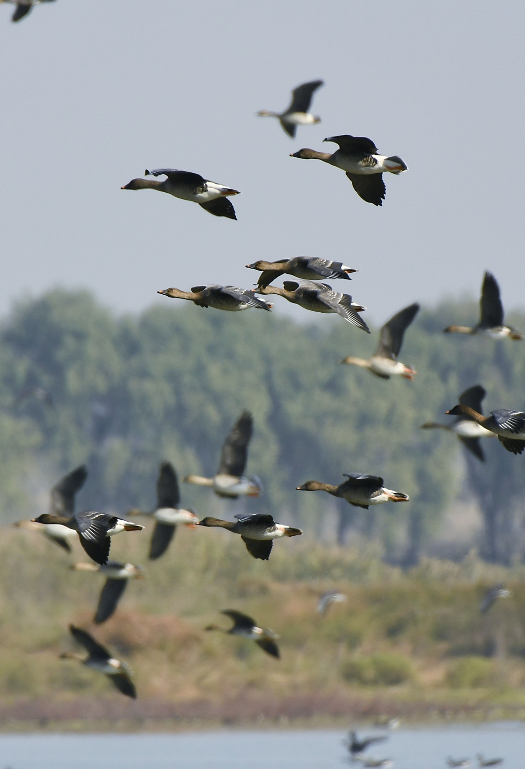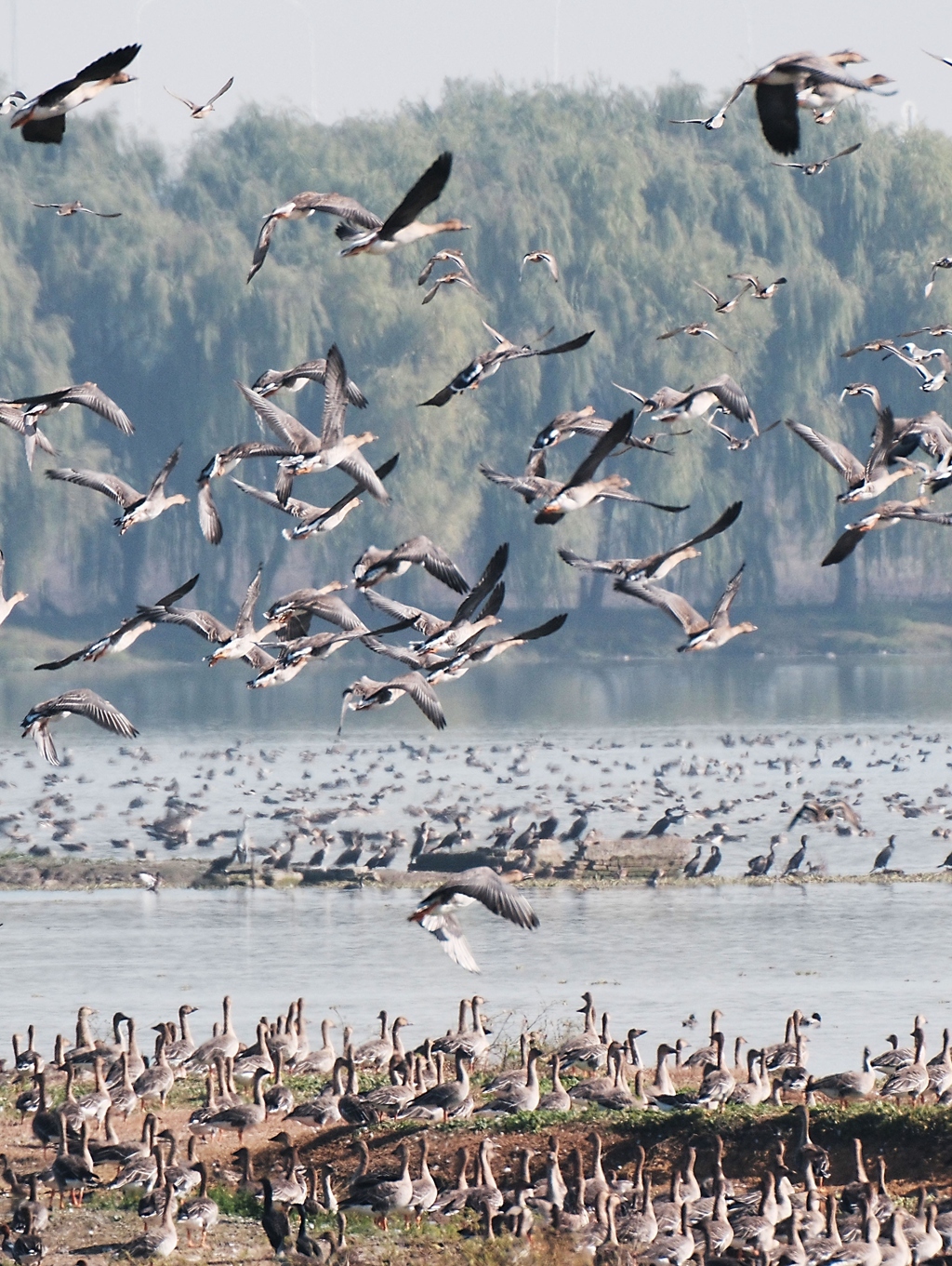 11月26日,在东西湖柏泉府河湿地观鸟台看到,包括豆雁、反嘴鹬等候鸟已经抵达此地,整个湿地上鸟鸣不断。
