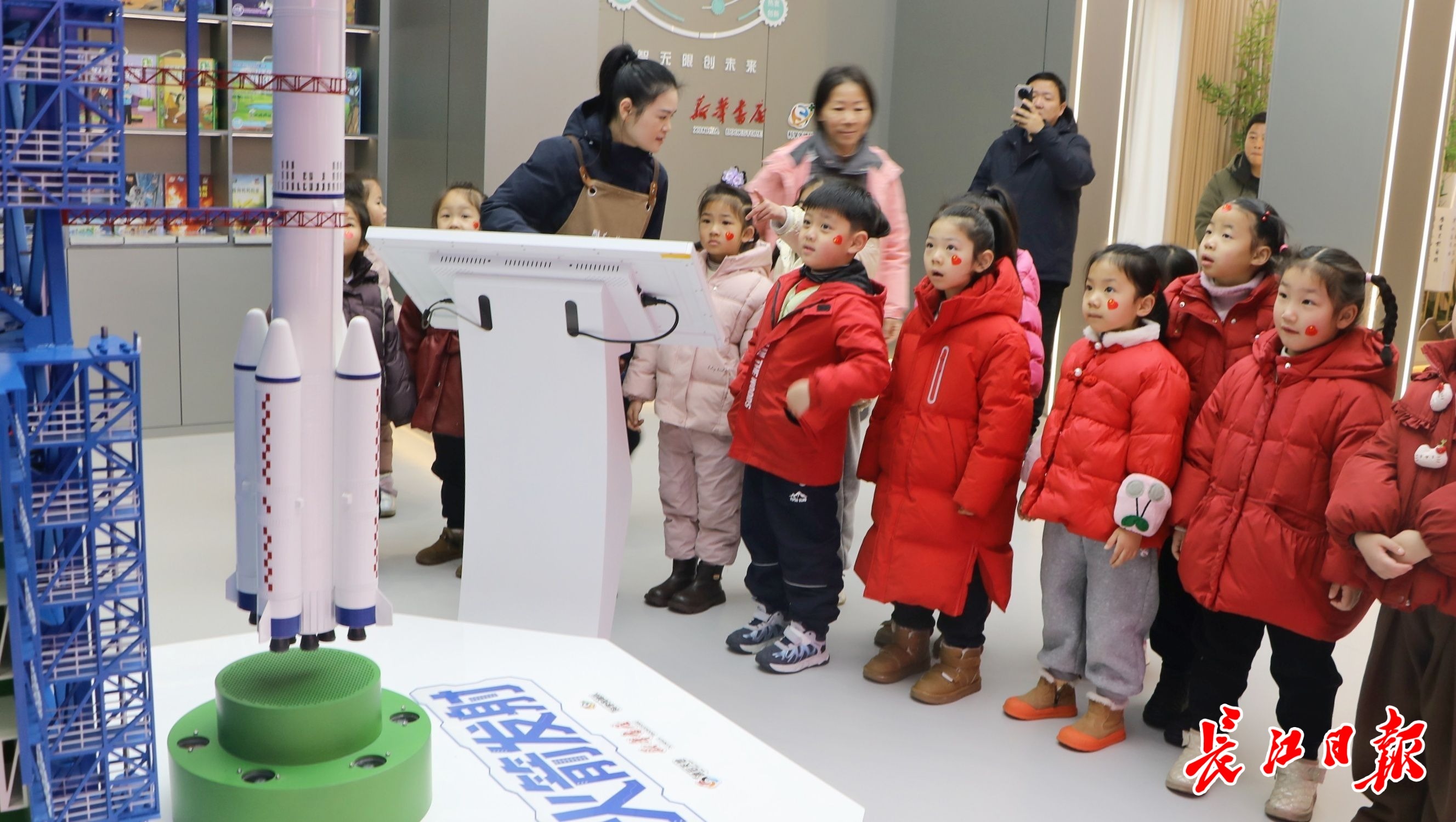 火箭发射过程模型演示引发孩子们的欢呼;在太空种植区,孩子们仔细观察植物生长过程;元素周期表的实物展示激发大家的科学探索热情……科教融合是此次焕新的一大亮点,黄陂新华书店与市、区科协联合打造的“科学教育中心”,为青少年带来沉浸式科普体验,成为全市书店首创的科普体验融合示范区。火箭模型展示区、绿色植物培植区、元素周期表体验区、虚拟实验区、显微镜实验区等,让书店成为兼具课后服务、研学实践功能的“第二课堂”。