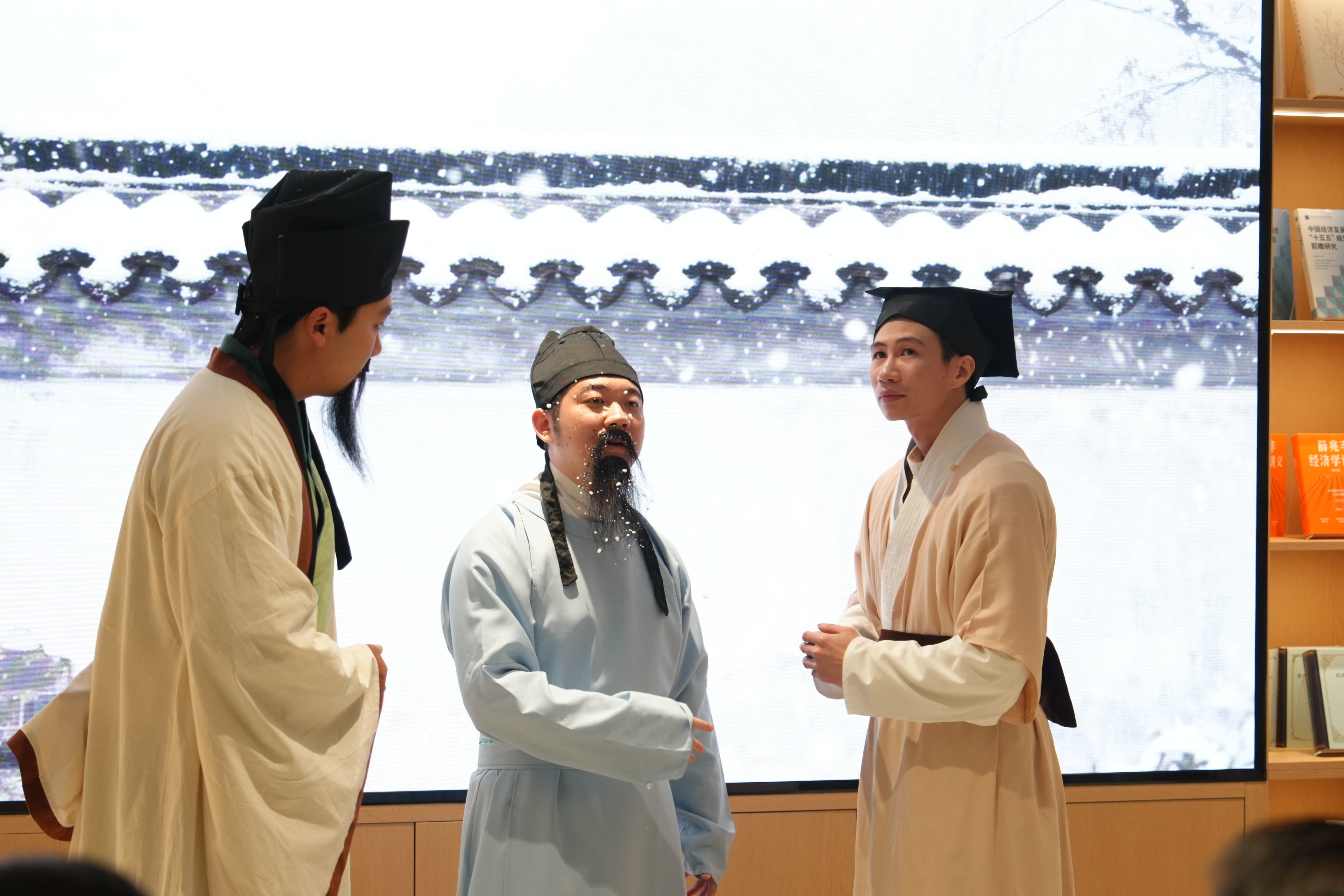 “黄陂新华书店这一次的升级改造很精彩,既有书籍又有文创,还有黄陂的特色文化。”开业仪式上,黄陂区文化馆副馆长吴健以湖北大鼓说唱形式演绎《新华·文化之光》,用本土文化形式讲述书店76载的坚守与创新。由武汉市新华书店(阅读推广中心)呈现的文艺情景剧《程门新雪》,以“程门立雪”典故中“尊师重道、诚心问学”的精神为原点,串联“立于风雪求师门”的古典坚守与“推门入厅享文韵”的当代盛景,生动演绎黄陂自盘龙城积淀的千年文脉与新华书店书香传承的融合。