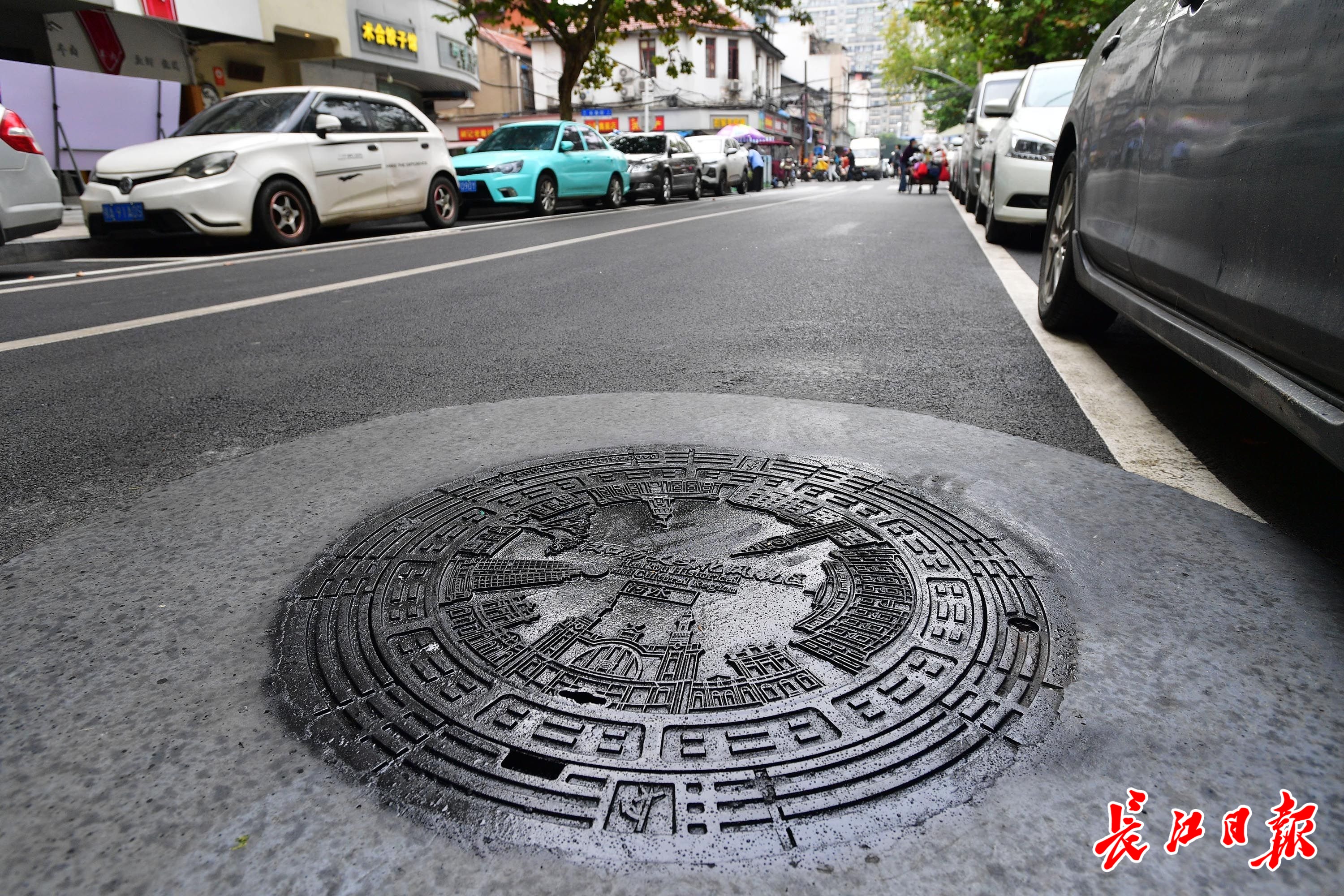 记者行走在山海关路上,路面宽敞平整,行人、车道划分精细,各家美食店门口能轻松排队;特别是重新刷黑的道路,排水能力显著增强,行走其中闲庭信步。值得注意的是,独具一格的路面井盖,有“汉口历史风貌区”的字样,还设计有武汉关、京汉火车站等元素,“汉口特色”满满,让道路景观锦上添花。
