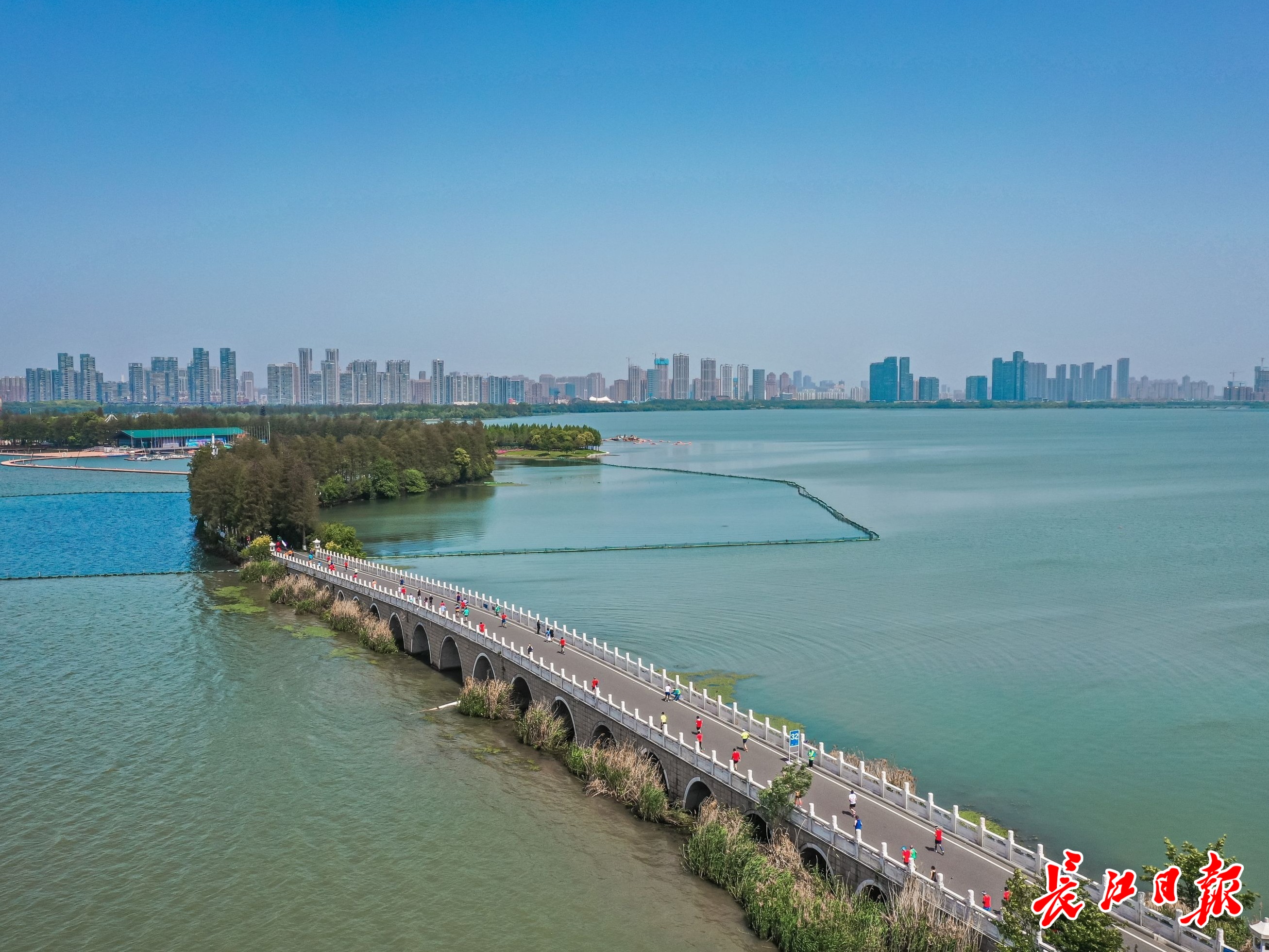水是东湖的灵魂,也是东湖绿道“安身立命”之本。东湖风景区成立了湖泊保护与管理领导小组,编制出《东湖水环境综合治理规划》,全面禁止经营性汽油、柴油船舶在东湖水域通行,下决心搞起“排口”革命,采用“原位生态改底技术”“分步沉水植物群落构建技术”等多种技术,构建东湖水下良性生态系统,重现320万平方米“水下森林”,子湖相通、江湖相济的大东湖生态蓝网和山体相连、山峦相映的大东湖生态绿网正稳步编织。