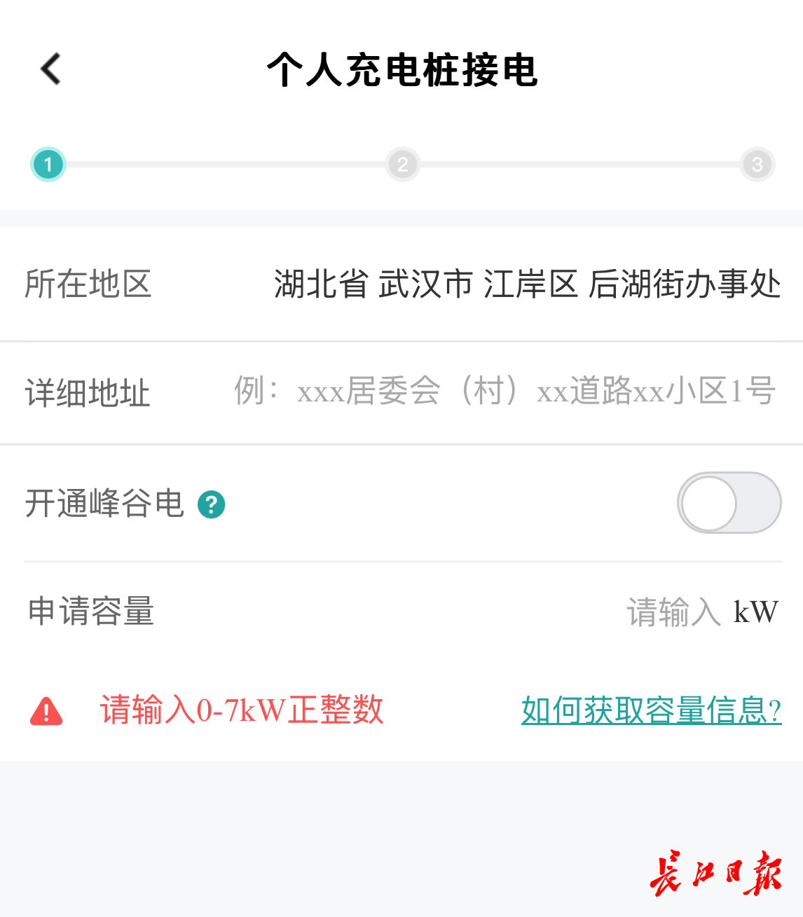 长江日报记者在“网上国网”APP中的“个人充电桩接电”申报界面看到,办理人可自主选择是否“开通峰谷电”。