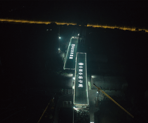 10月14日0时,在武天高速公路(武汉至重庆高速公路武汉至汉川段)项目现场,随着总指挥一声令下,跨沪蓉铁路大桥转体施工启动。