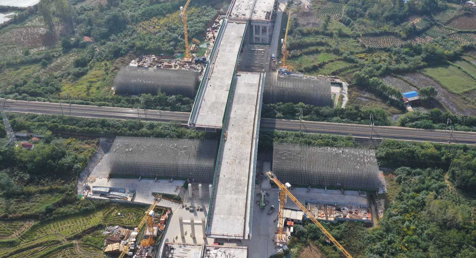武天高速武汉至汉川段跨沪蓉铁路大桥转体成功。
