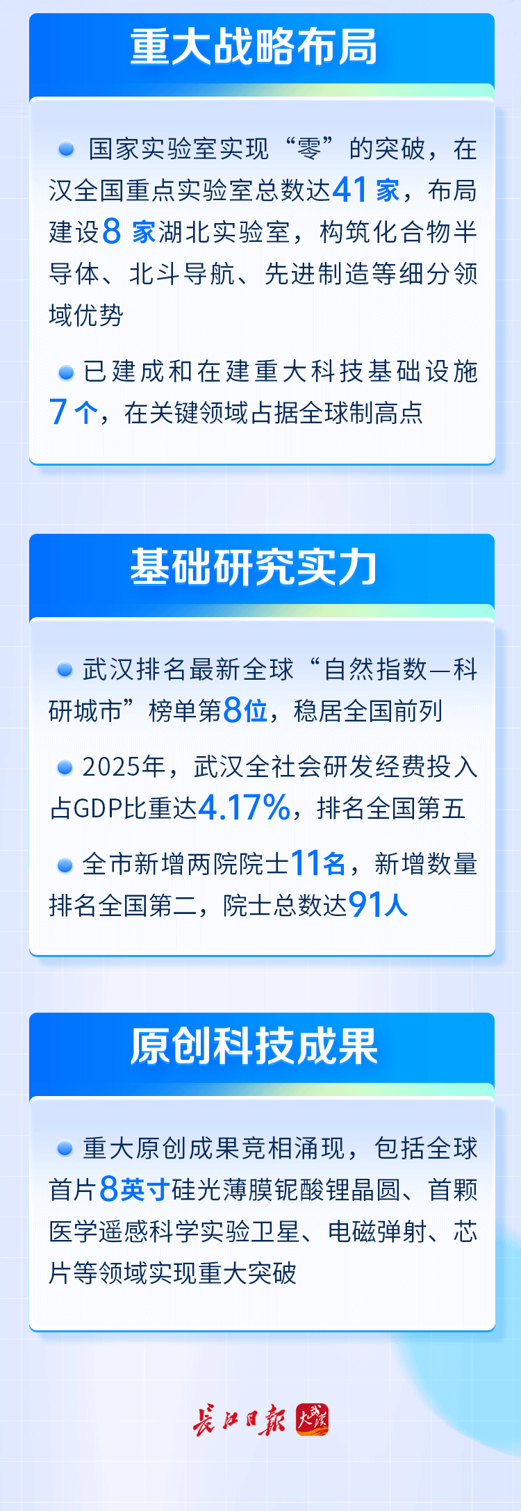 2025年,武汉全社会研发经费投入占GDP比重已达4.17%,居全国第5位。