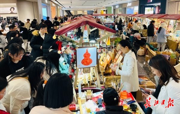夜幕降临,武汉江宸天街人头攒动、热闹非凡:“朱炳仁·铜”武汉首展吸引众多目光,游客围在展台前饶有兴致地体验铜制品制作的独特乐趣;国潮市集里,近30个年俗雅集摊位一字排开,咖啡美酒、国潮好物、鲜花美食琳琅满目,中国台湾摊主陈志豪的蚵仔煎小摊前更是排起了等待的队伍。有着30年从业经验的他,作为家族手艺第三代传人,一边熟练地翻煎着蚵仔煎一边笑着对记者说:“能在武汉的跨年夜让更多人尝到正宗的台湾味道,我特别开心。”商场内的盒马超市同样人气高涨,各色年宵花迎来热销,蝴蝶兰、大花蕙兰、银柳等品种被市民争相选购,为跨年夜增添了浓浓年味。