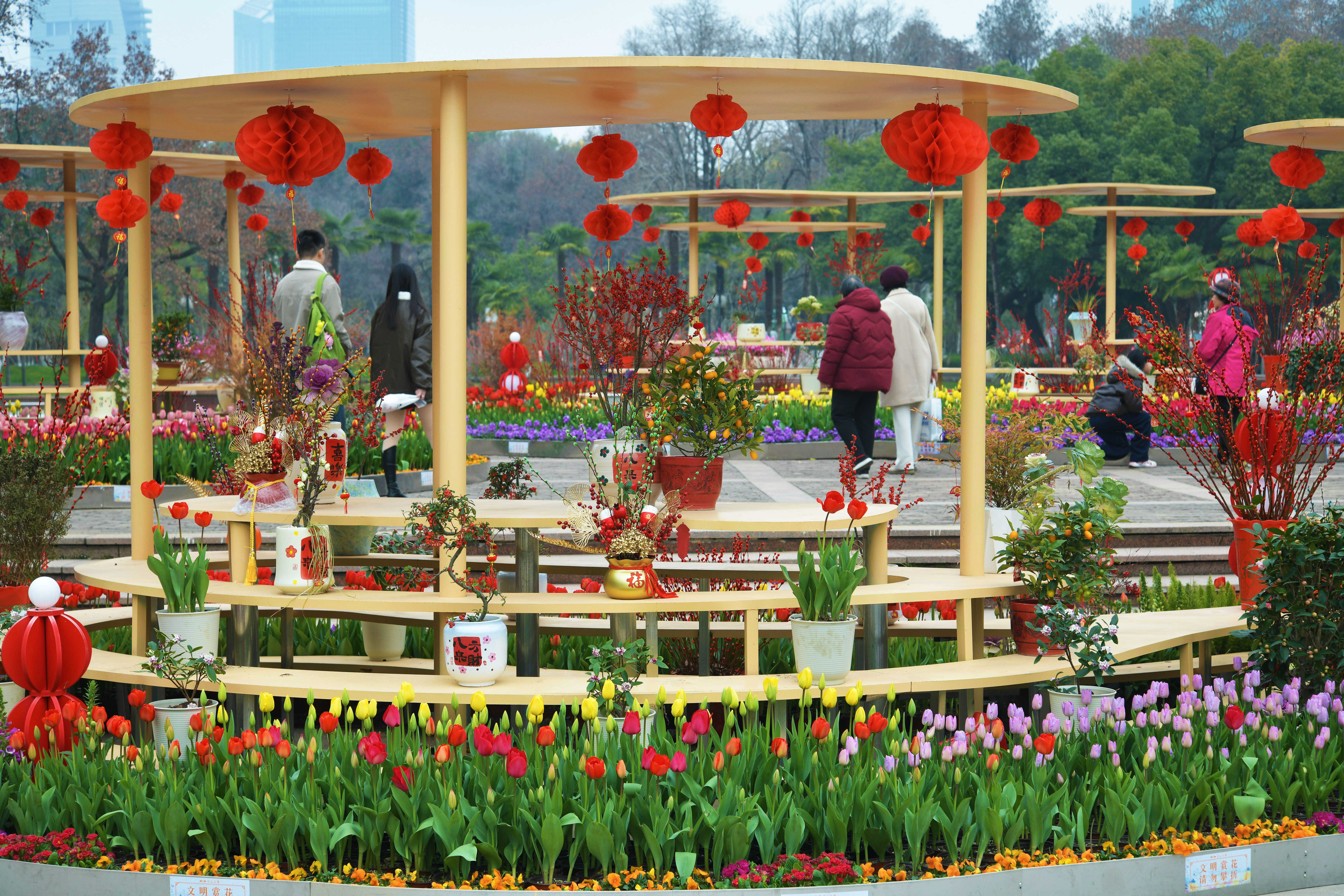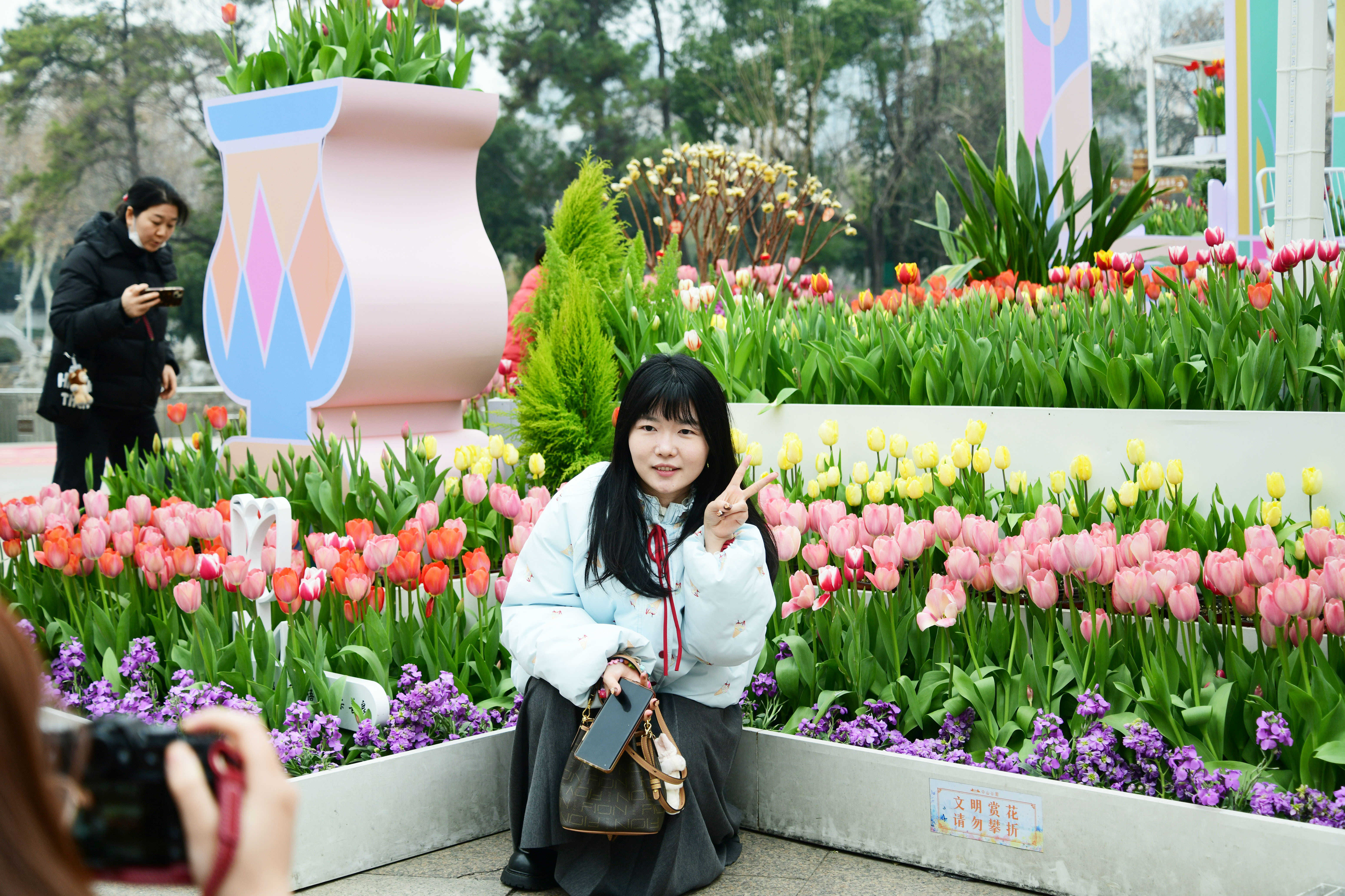 2月15日,中山公园新春郁金香花展上,众多市民来到这里游玩,本次郁金香花展共展出两万余株不同品种的郁金香,市民在郁金香花海中流连忘返。园区蜡梅和各色梅花也绚丽绽放,让人们感受到浓浓春意。