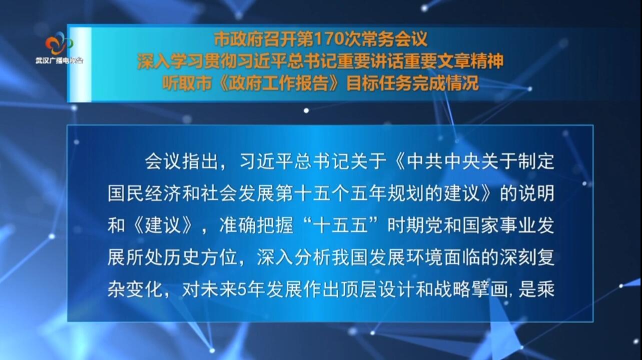 市政府召开第170次常务会议 深入学习贯彻习近平总书记重要讲话重要文章精...