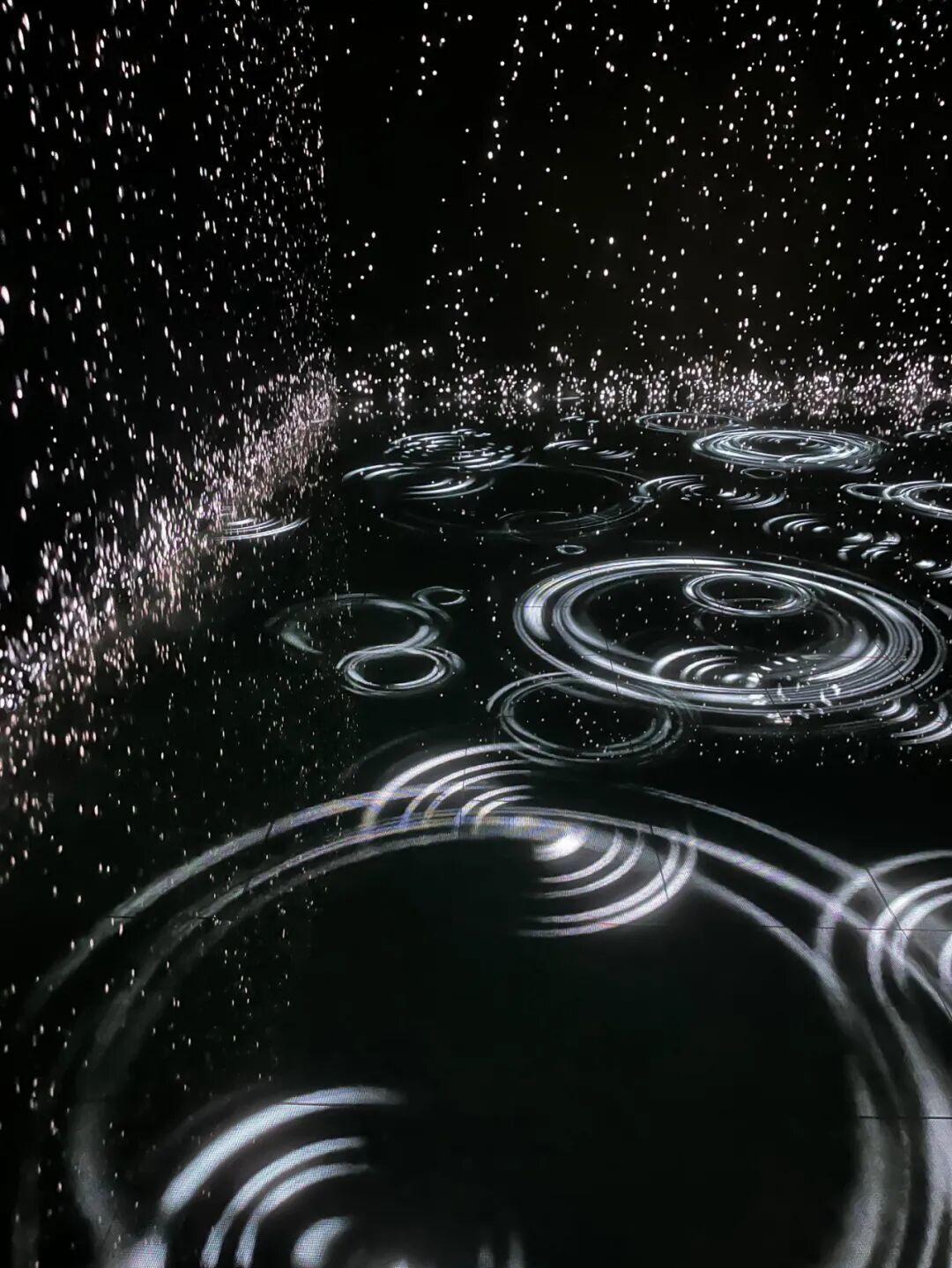记者迈入内场,首先观看了“Water of Time”主题的影像:画面起初一片漆黑,突然出现了一滴水,水落了下来,溅起一片水花。掉下的水珠越来越多,变成了暴雨,并伴随着电闪雷鸣。有位观众下意识地缩了缩肩膀,仿佛真的要被雨淋湿一般。