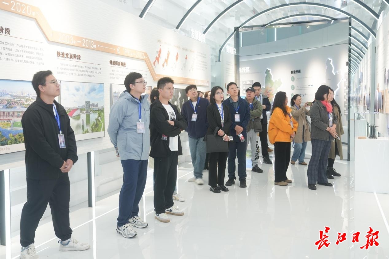 走进中国车谷展示中心,“城市观察团”仿佛打开了武汉经开区的时光档案。从一层的形象序厅、历史文化展厅、现代产业展厅、规划展厅一路走来,讲解员介绍了武汉经开区的区域概况、历史底蕴、产业发展布局、战略规划等内容。