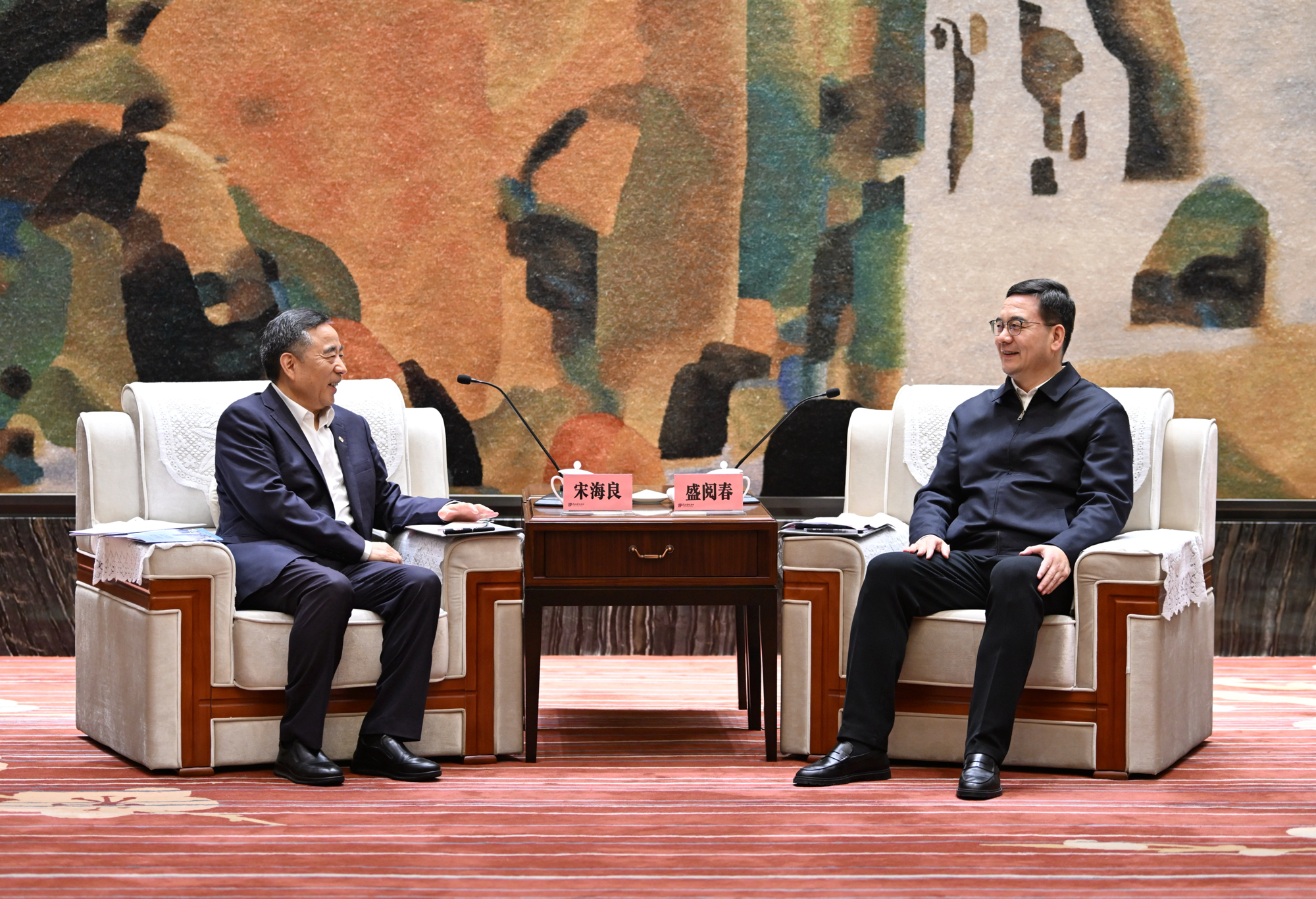 11月7日,省委常委、市委书记、市长盛阅春会见中国交通建设集团党委书记、董事长宋海良。