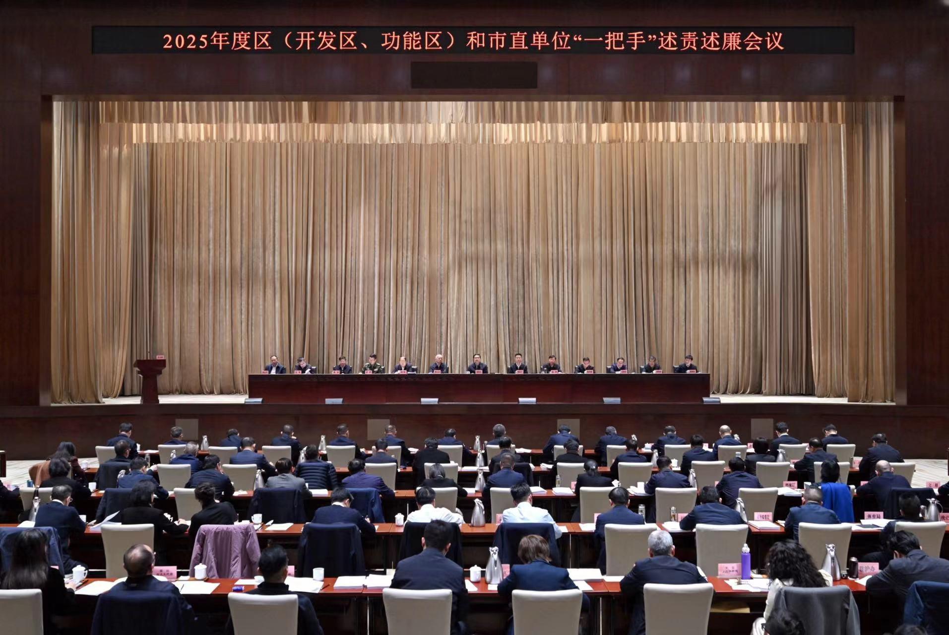 会上,26个区(开发区、功能区)和部门的党(工)委(党组)主要负责同志现场述责述廉,91家单位的党委(党组)主要负责同志作书面述责述廉。盛阅春对现场述责述廉逐一点评,肯定成效、指出问题,明确整改方向和工作要求。