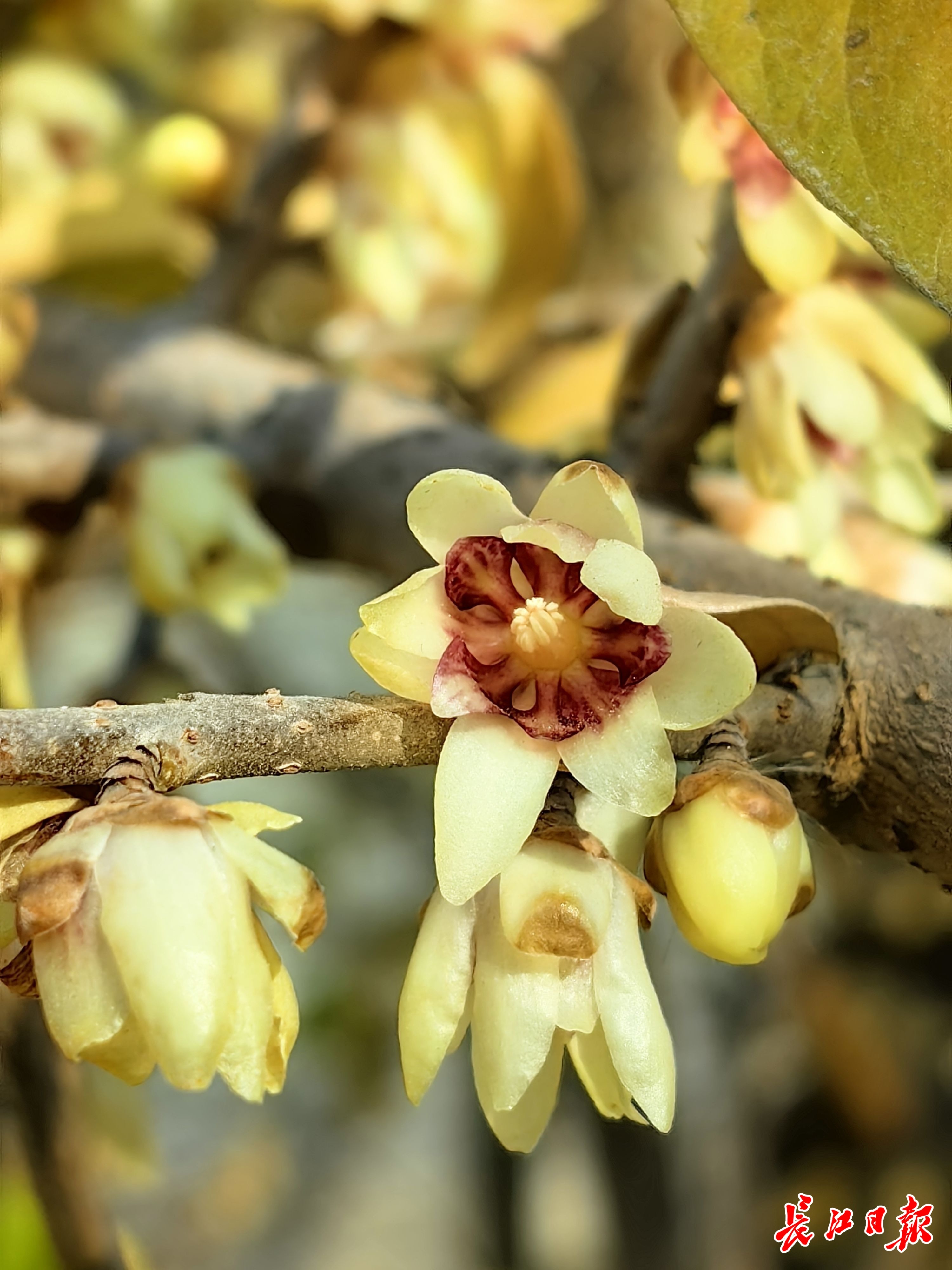 “蝶粉蜂黄大小乔,中庭寒尽雪微销。”南宋词人吴文英笔下美如三国“二乔”的蜡梅花,今年在武汉的公园开得比往年更早。长江日报记者连日走访了解到,自12月中旬起,解放公园、青山公园、紫阳公园等多座公园,蜡梅悄然绽放,为岁末的江城平添一抹亮色与幽香。