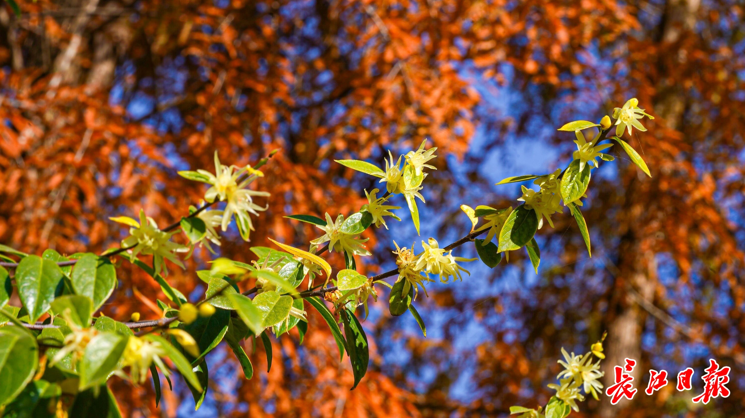 市园林科普公园的亮叶蜡梅与金黄的水杉同框。