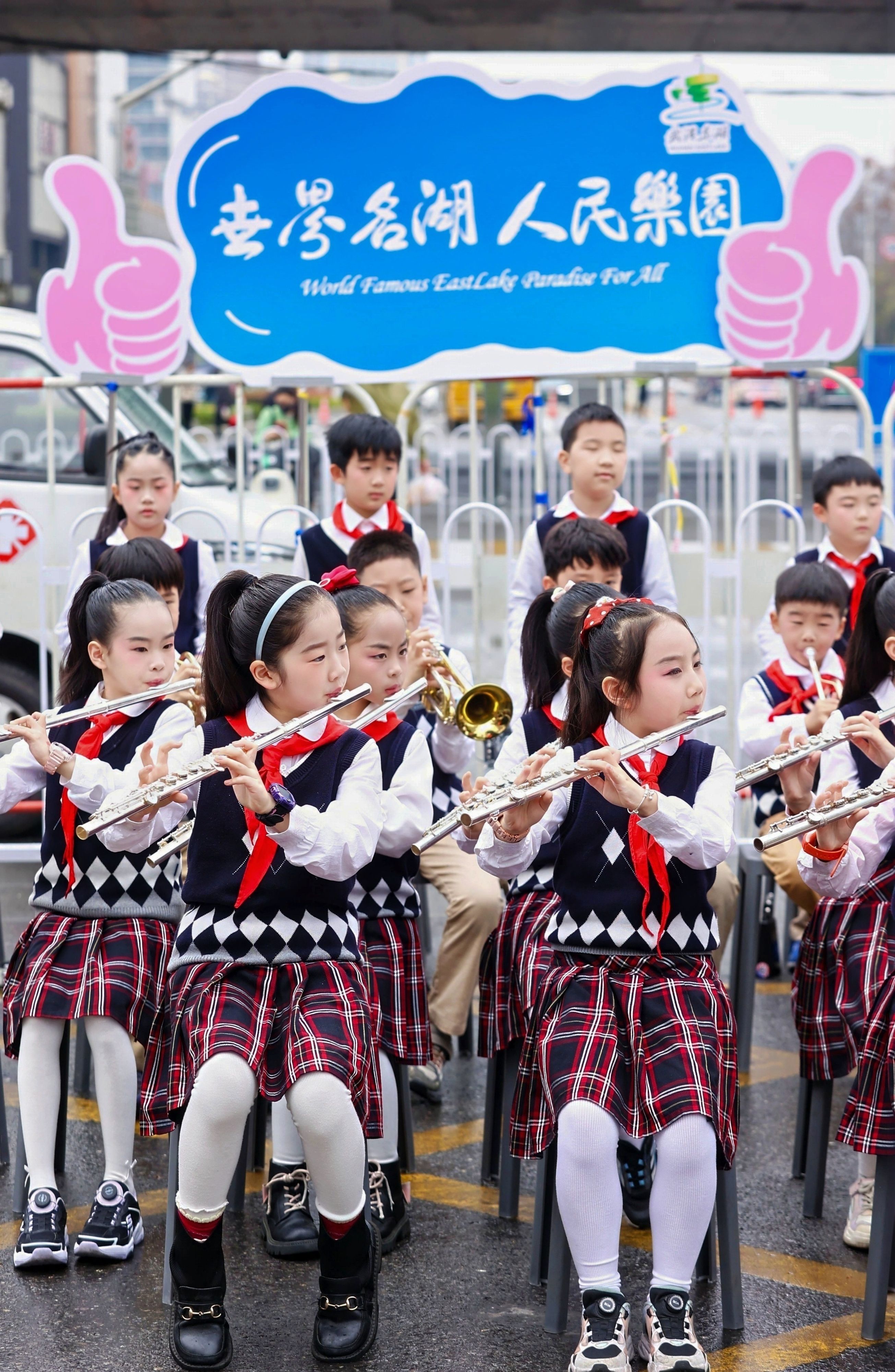 华侨城小学的管乐队学生们将在现场为汉马选手加油助威。