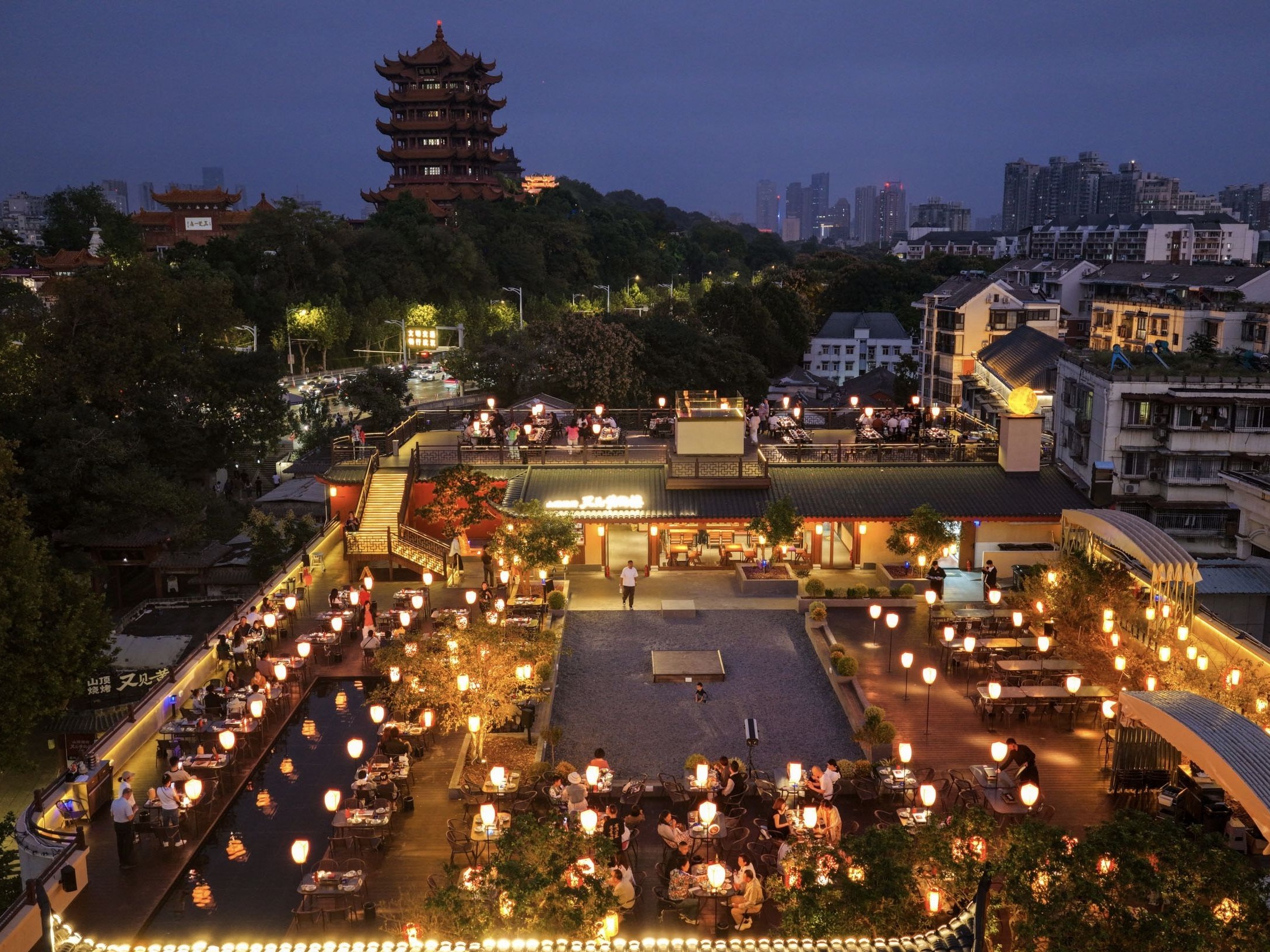 “黄鹤楼是武汉天际线极具标志性的IP,依托天台形成的新消费空间,既能通过更新盘活闲置资产,也能提升其商业与文旅价值。”于保罡说,露台空间、天台餐厅等高空消费场景,也使得游客尽可能与黄鹤楼、长江大桥等城市地标同框,以文化和体验感留住顾客。