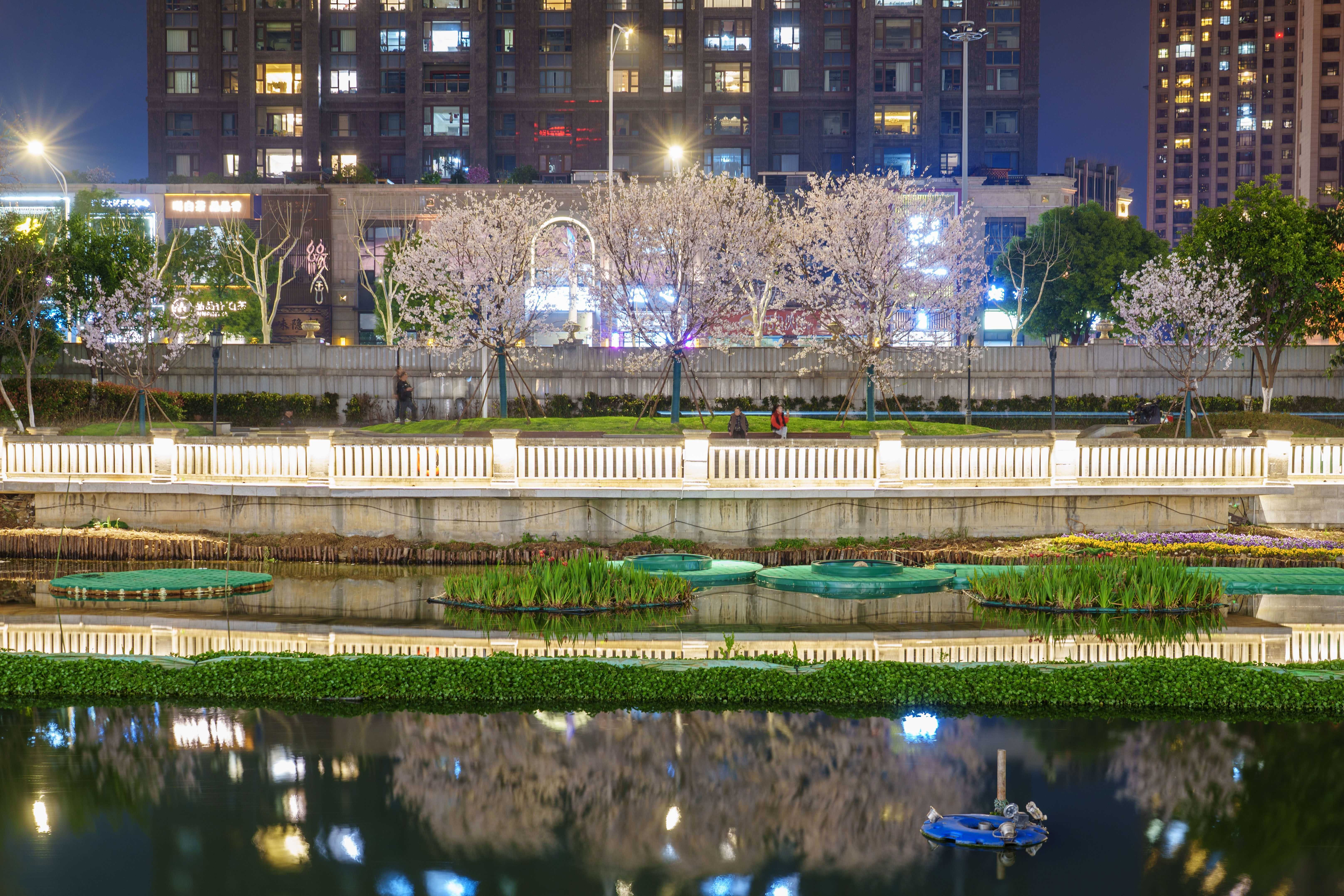 近日,武昌楚河北岸亮灯了。长江日报记者站在汉街望向对岸,1.6公里滨水廊道新植的樱花次第绽放,粉白花瓣随风轻扬,与粼粼波光相映成趣。入夜后,暖柔灯光沿水岸铺展,树影、花影、灯影倒映水中。无论是白天漫步赏花,还是傍晚沿河闲行,成为市民休闲赏影的好去处。