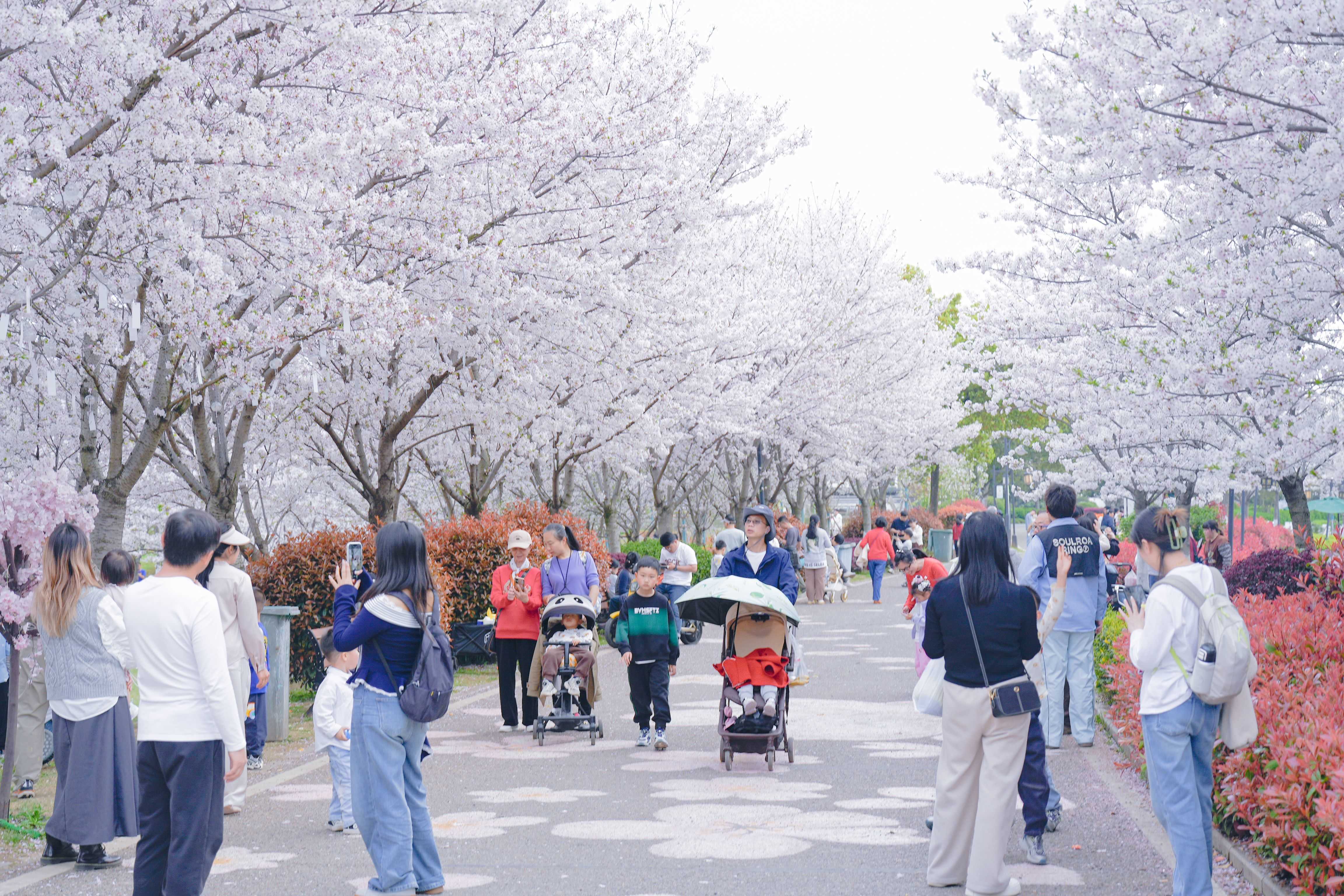 郁金香、虞美人、二月兰等千亩花海花开灿烂,全景实景史诗大剧《盛世楚歌》首演,《十二花神令》沉浸式互动节目、乐队表演、魔法秀、戏剧等演艺上新。4日当天,花博汇景区吸引近两万游客前来踏青赏花。