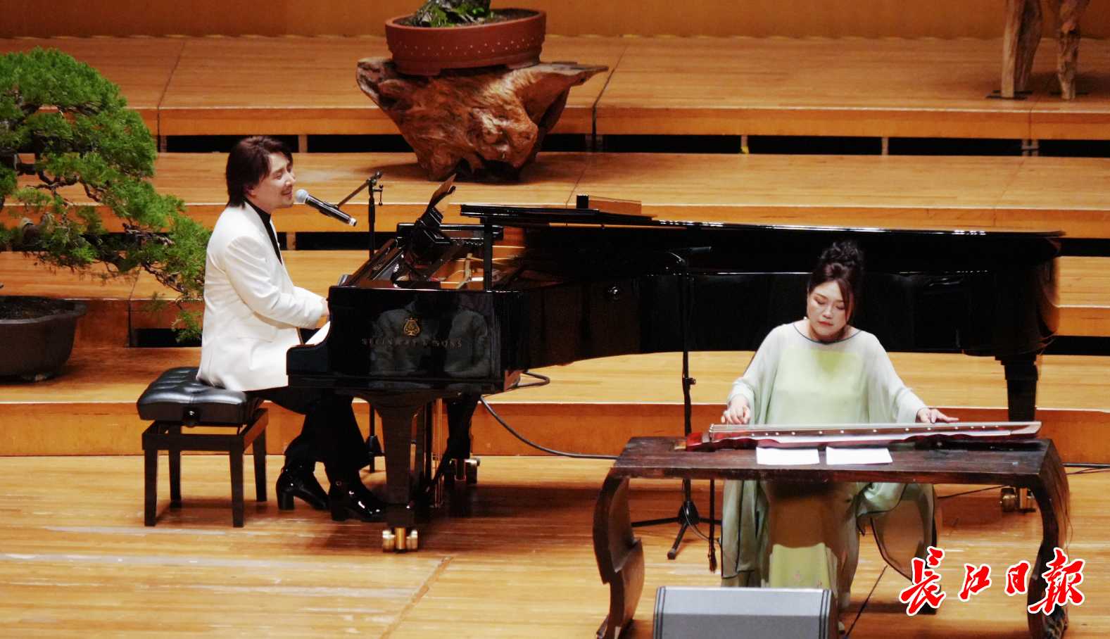 “古琴在此,黄鹤在此,长江在此……”“君住长江头,我住长江尾,日日思君不见君,共饮一江水……”音乐会尾声,曹轩宾和赵家珍接连演绎两首特别为武汉观众准备的《在此》和《江水谣》,钢琴和古琴交融回荡,让全场观众又惊又喜。尽管是第一次来到琴台音乐节的舞台,但曹轩宾却说自己对于武汉是“回归”。他和《在此》的词作者喻江是好友,还曾出演过音乐剧《屈原》,此次在高山流水的知音之地和古琴合作,还游历了古琴台,让他对楚地充满“知己”之感。“我写过两句歌词,酒要醉给知己,琴只赠予知音。所以在武汉唱《在此》和《江水谣》有一种特别的能量和气质,知音就是伯牙和子期,知音就在这里。”