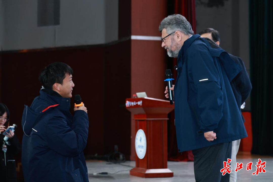 互动环节中,学生们的问题从“数学如何与其他学科保持内在联系”到“为何选择数学作为终身方向”,充满好奇与锐气。杰曼诺夫教授始终耐心倾听,以深入浅出的语言和坦诚的态度一一回应。他鼓励大家保持耐心与韧性:“最深邃的理论源于最纯粹的好奇,最伟大的突破成于最坚韧的探索。”