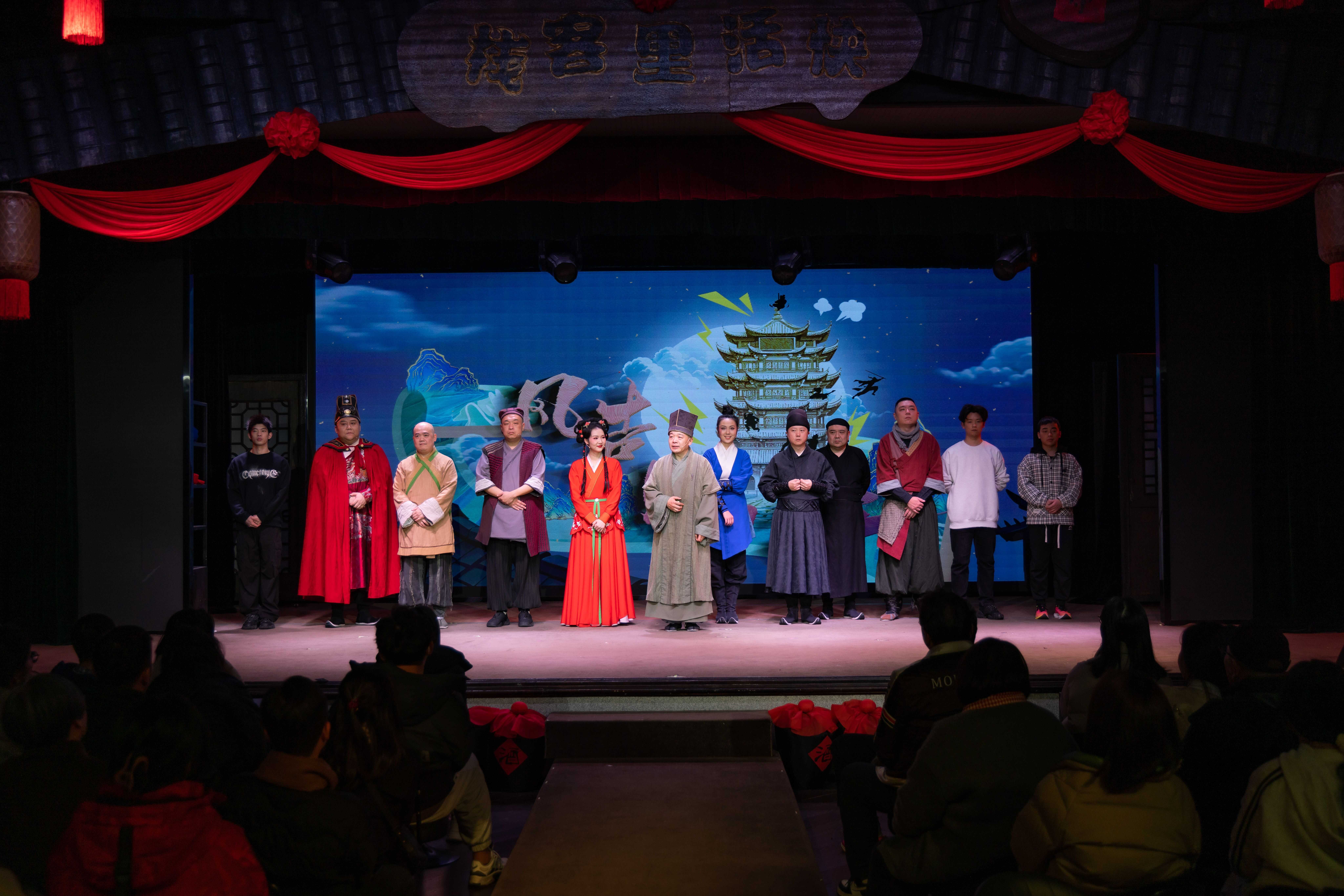2025年,恰逢黄鹤楼重建开放四十周年,一部以黄鹤楼重建为背景的沉浸式喜剧《风声鹤“立”》在武汉火爆出圈。该剧由武汉说唱团创作,以明嘉靖年间黄鹤楼焚毁后各方势力围绕重建展开博弈为主线,用喜剧形式激活历史,让观众在笑声中感受这座名楼“屡毁屡建”的坚韧与新生。