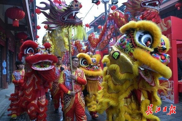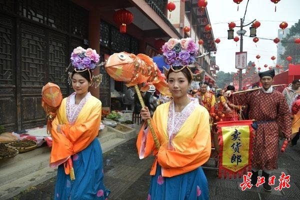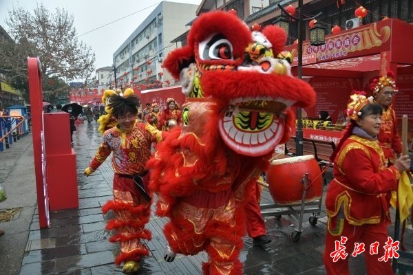 2月6日,东西湖区柏泉街茅庙集古街人声鼎沸、喜气洋洋,马年茅庙集庙会吸引了众多市民和商家前来。庙会以乡村振兴发展为主线,汇聚民俗展演、传统戏曲、非遗传承、农产品展销、特色美食等多元业态。舞龙舞狮鱼灯巡游轮番登场,让烟火古街充满活力。