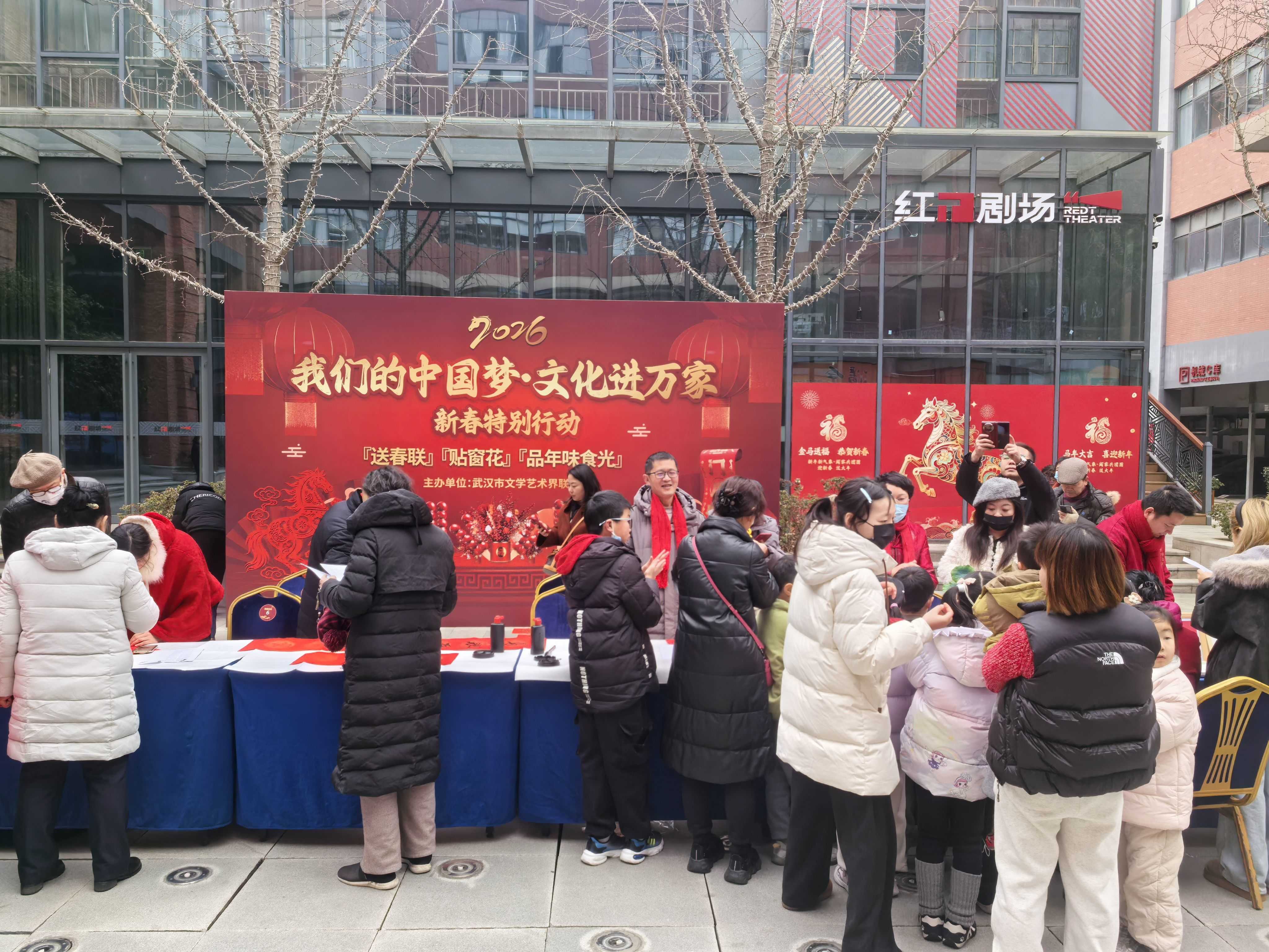 新春的脚步渐近,文化的馨香漫溢江城。2026年“我们的中国梦 文化进万家”暨武汉市文联“红色文艺轻骑兵”新春特别行动自1月18日启动以来,组织数百名文艺志愿者深入乡镇、社区、“文艺两新”集聚区、企业、车站、博物馆等一线阵地,开展形式多样、内容丰富的文艺惠民活动。书法家现场挥毫送福、文艺工作者精彩演出迎春、非遗展示匠心添彩,为广大群众送去丰盛的“文化年货”,营造出欢乐、祥和、喜庆的节日氛围。
