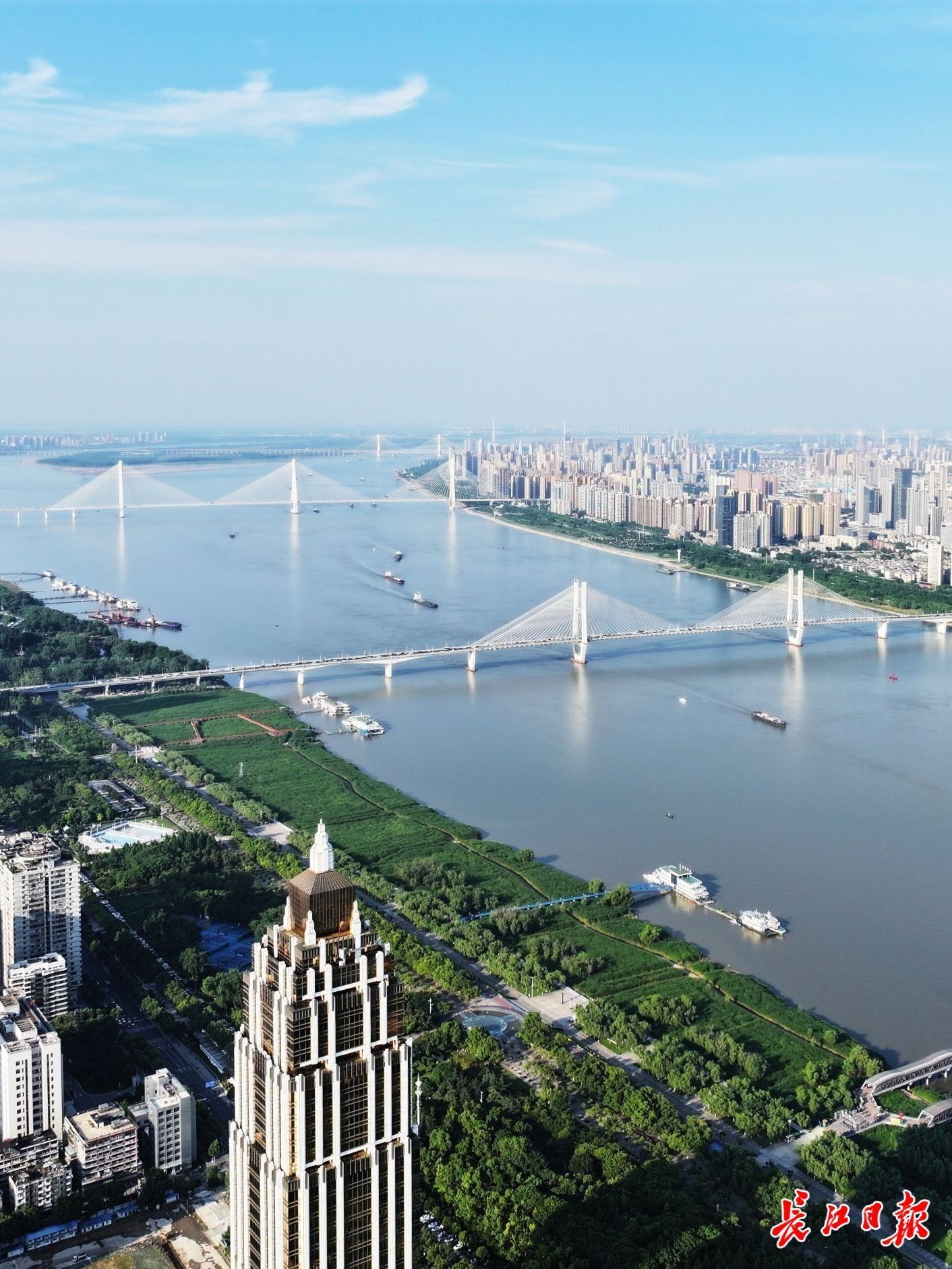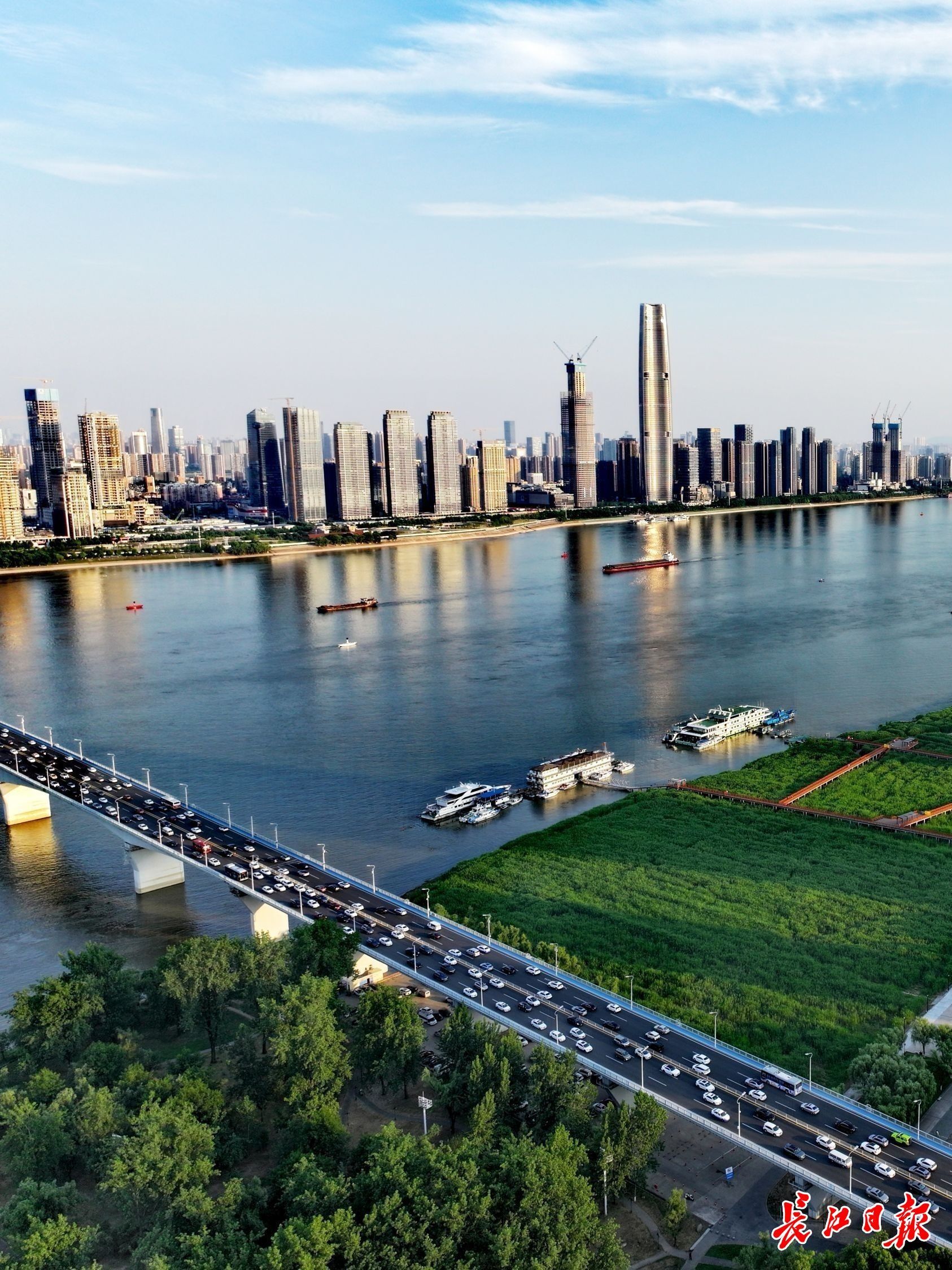 武汉两江四岸水清岸绿江阔。