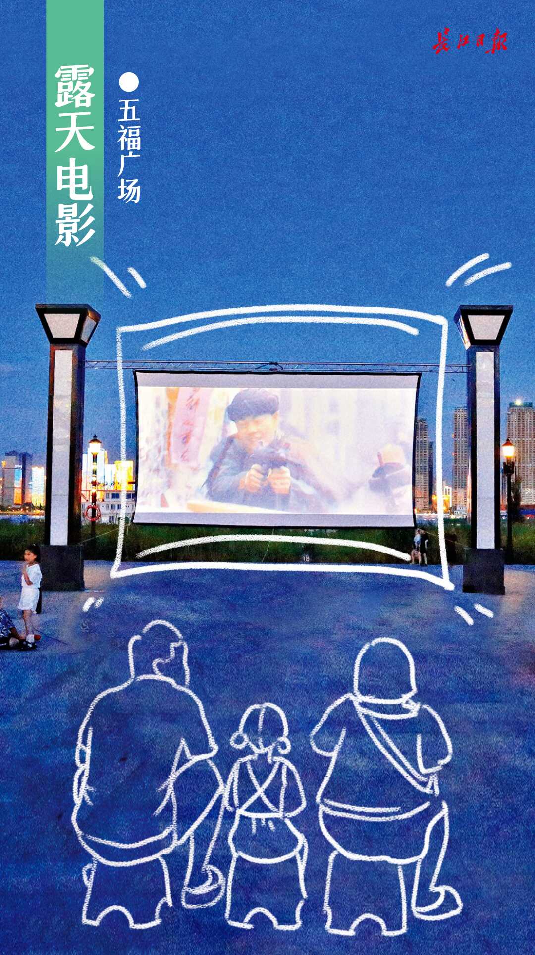 何秀是汉口江滩五福广场露天电影的忠实粉丝。她常常带着家人来享受这份惬意的时光,“心一下就静下来了”。