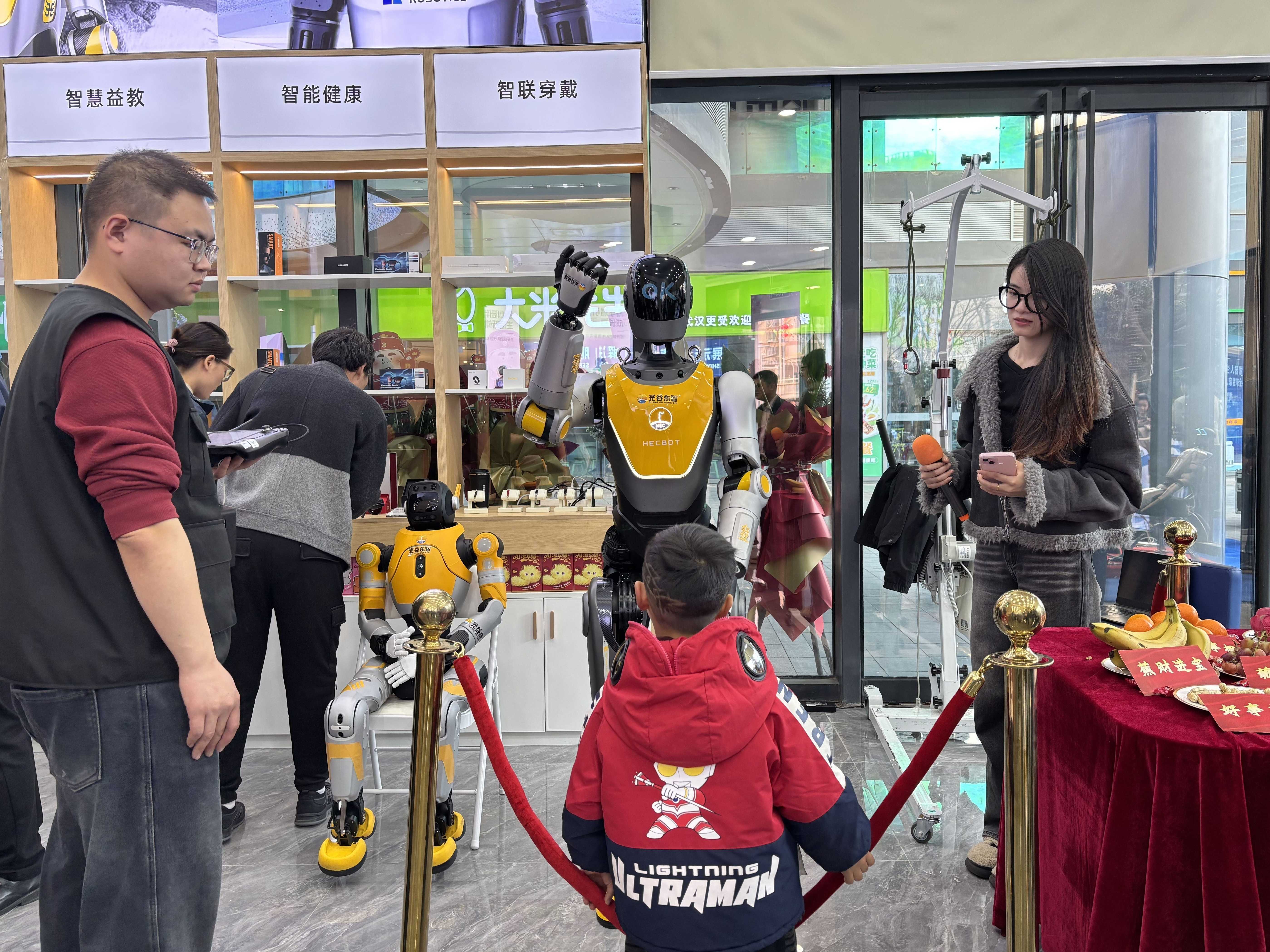 “门店落户武汉数创大厦,是因为周边人工智能产业氛围浓厚。”华视集团相关负责人介绍,集团已与楼内的荆楚人形机器人达成合作协议,未来,武汉滨江数创走廊内的其他人工智能企业产品都可以在门店展销。